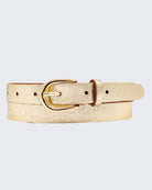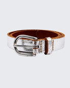 Le détail chic qui fait toute la différence . Transformez votre tenue en un clin d’œil grâce à la ceinture Eva : un accessoire sophistiqué au style affirmé, conçu pour celles et ceux qui aiment se distinguer. Fabriquée à la main aux Pays-Bas avec du cuir italien pleine fleur tanné végétal, elle incarne l’alliance parfaite entre qualité artisanale et élégance moderne. Proposée dans une palette de teintes métalliques éclatantes, la ceinture Eva attire tous les regards. Son design épuré et sa finition lumineuse subliment votre silhouette, que ce soit avec un jean, une robe ou un tailleur. De jour comme de nuit, elle apporte une touche raffinée à votre style. Largeur : 2 cm – idéale pour mettre en valeur la taille sans surcharger Matière : Cuir pleine fleur tanné végétal – souple, durable et responsable Boucle : Sans nickel, en provenance d’Italie – un confort à porter et un éclat subtil