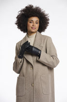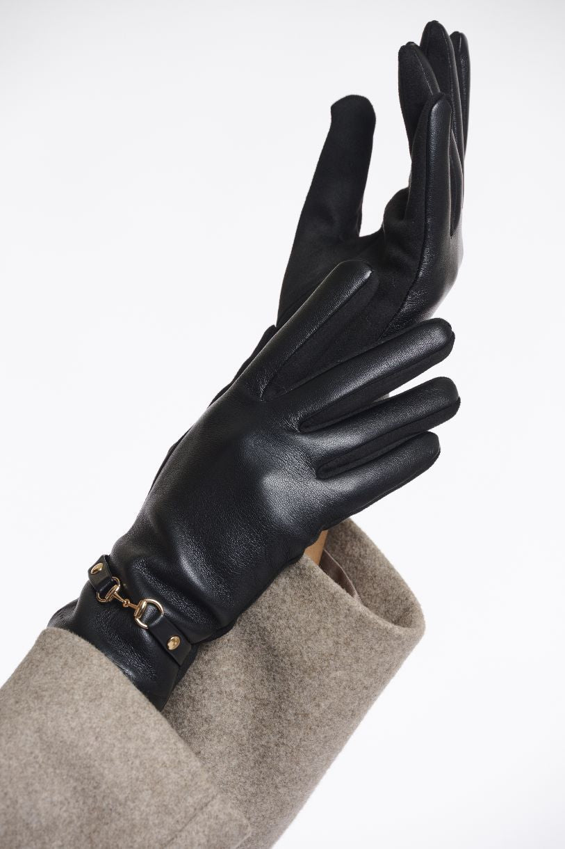 Ces gants en faux cuir lisse allient raffinement et modernité, avec leur finition impeccable et leur détail doré façon mors au poignet. Une touche subtile qui rehausse la silhouette, parfaite pour compléter un manteau chic tout en gardant les mains au chaud avec style.