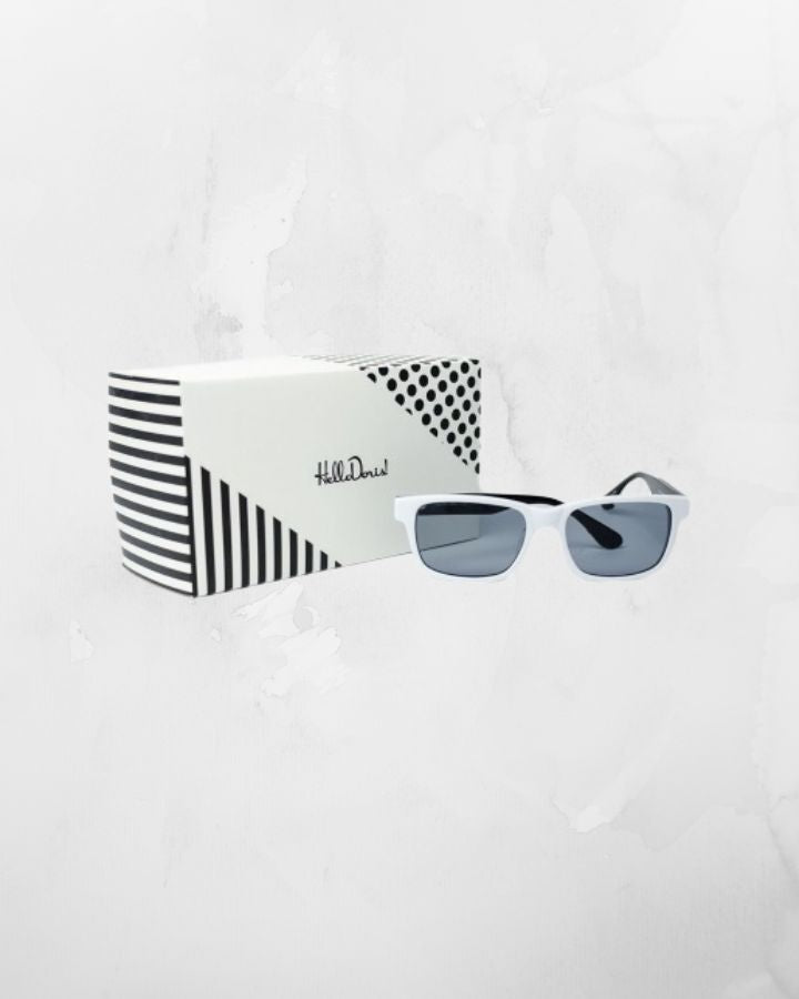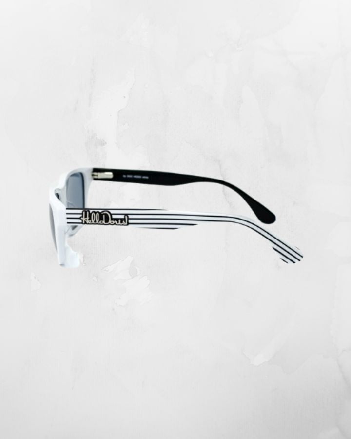 Les lunettes de soleil sont de retour cette saison, avec l’arrivée d’une gamme de modèles tous aussi superbes que mémorables. Du style exubérant à celui plus raffiné d’Audrey Hepburn, nos verres tout en nuance vous protégeront magnifiquement, avec un ajustement parfait, qu’importe le moment; de la ville à la campagne, de la mer à la montagne et du tendre lever au chaleureux coucher du soleil. LENTILLES 100% de protection UVA/UVB INFORMATIONS - Lunettes de soleil faites à la main de qualité optique - Style Classique - Monture en acétate italien blanc lustré avec rayures noires sur les branches - Logo HelloDoris! sur la branche gauche - Présenté dans un emballage cadeau HelloDoris! qui contient un petit étui premium en acétate rigide, pochette et lingette nettoyante en microfibre DÉTAILS Largeur de lentille : 2.1" Hauteur de lentille : 1.5" Pont : 0.7" Branche : 5.5" Largeur de monture : 5.7" Importé
