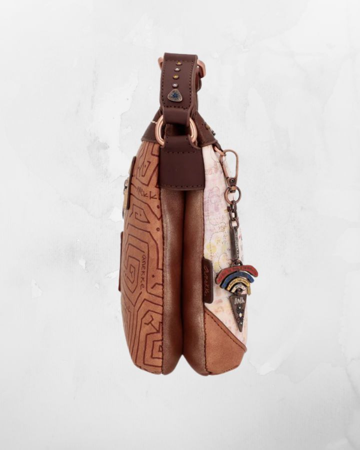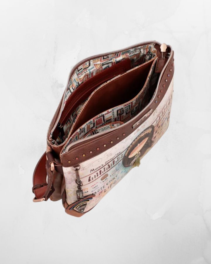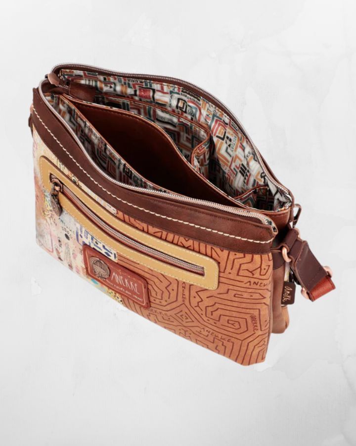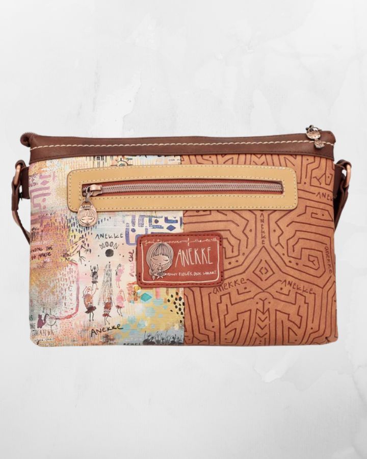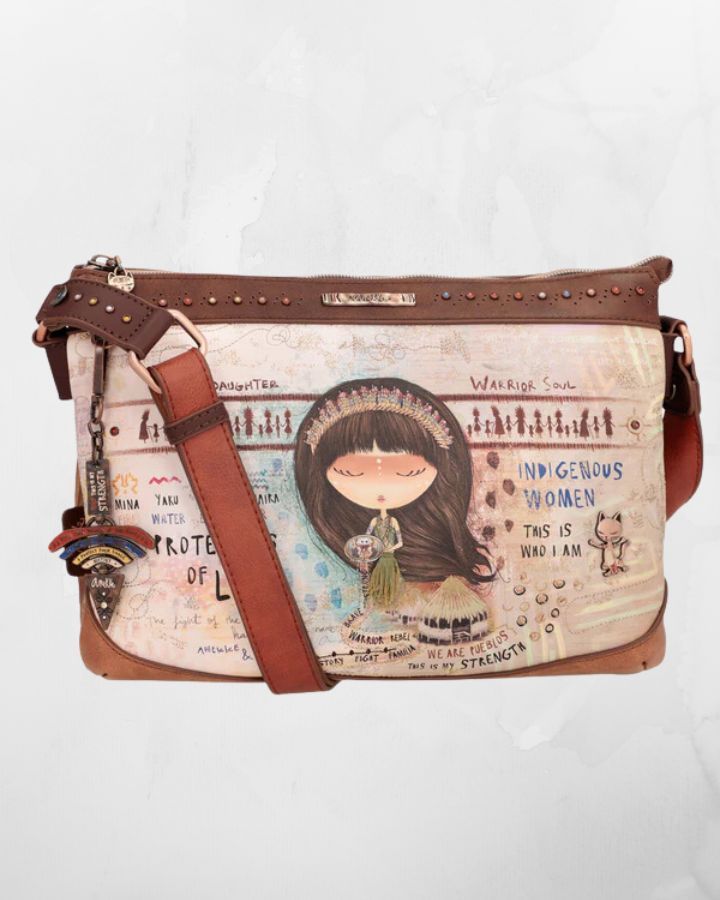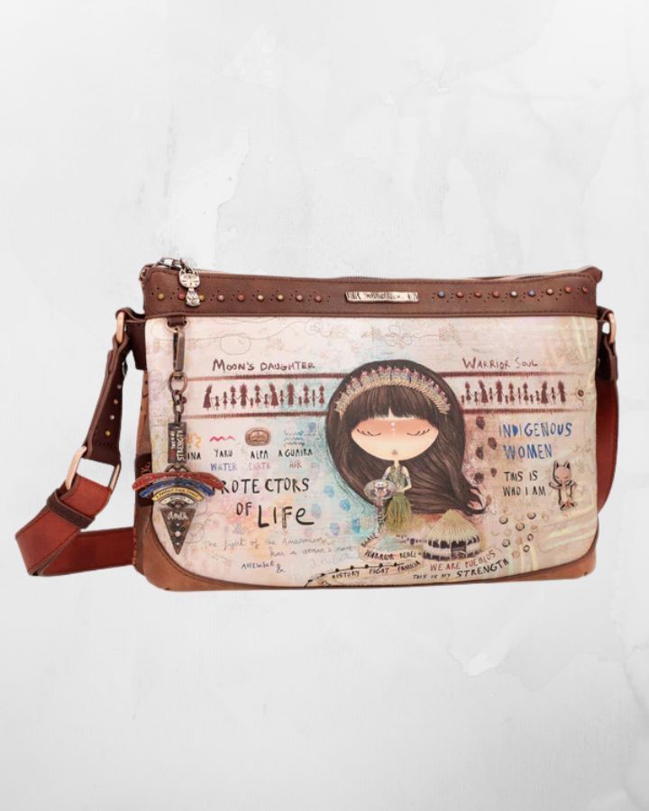 Ce sac à bandoulière menire à 2 compartiments fait partie de la collection Anekke Menire, un hommage aux collectifs de femmes indigènes d'Amazonie, qui se battent pour préserver leur environnement et leurs traditions. Le mot « menire » est le terme par lequel les femmes de la tribu Xikrin désignent les femmes indigènes de l'Amazonie. Et désormais, une partie de leur histoire vous accompagnera toujours avec votre nouveau sac préféré. « Votre nouvel accessoire préféré ! Ce sac à bandoulière a 2 compartiments indépendants, est de taille moyenne à grande et a une poche arrière. L'imprimé devant de la collection Anekke Menire est plein de symbolisme et de références à la culture des femmes d'Amazonie. Anekke est représentée avec des détails brodés sur ses cheveux et ses vêtements. L'imprimé combine des tons bruns, rougeâtres, ocres et bleus, dans lesquels divers éléments culturels de l'Amazonie sont représentés. Le fleuve Amazone jaillit des mains d'Anekke, laissant dans son sillage les valeurs des femmes amazoniennes : guerrières, courageuses, familiales... Découvrez-les toutes ! Le dos combine différents tons et textures, créant des formes originales inspirées de l'artisanat amazonien. et dispose d'un patch décoratif. La poignée est une bandoulière réglable à différentes longueurs, parfaite pour l'adapter à la hauteur que vous préférez. L'intérieur est doublé d'un tissu original imprimé avec des motifs de la collection, et possède des poches. La touche finale, ce sont les détails qui la rendent unique. Certains d'entre eux sont un logo métallique personnalisé, un patch décoratif, des épingles, des rivets et des clous, des pièces d'angle, des broderies et des poignées personnalisées. Enfin, nous ne pouvions pas manquer l'un des détails les plus spéciaux : le porte-clés. Son design original combine des phrases inspirées de la collection, de multiples couleurs et symboles indigènes et une pointe de flèche personnalisée. La touche finale d'un accessoire qui vous fera craquer. Obtenez votre sac Anekke Menire préféré maintenant !