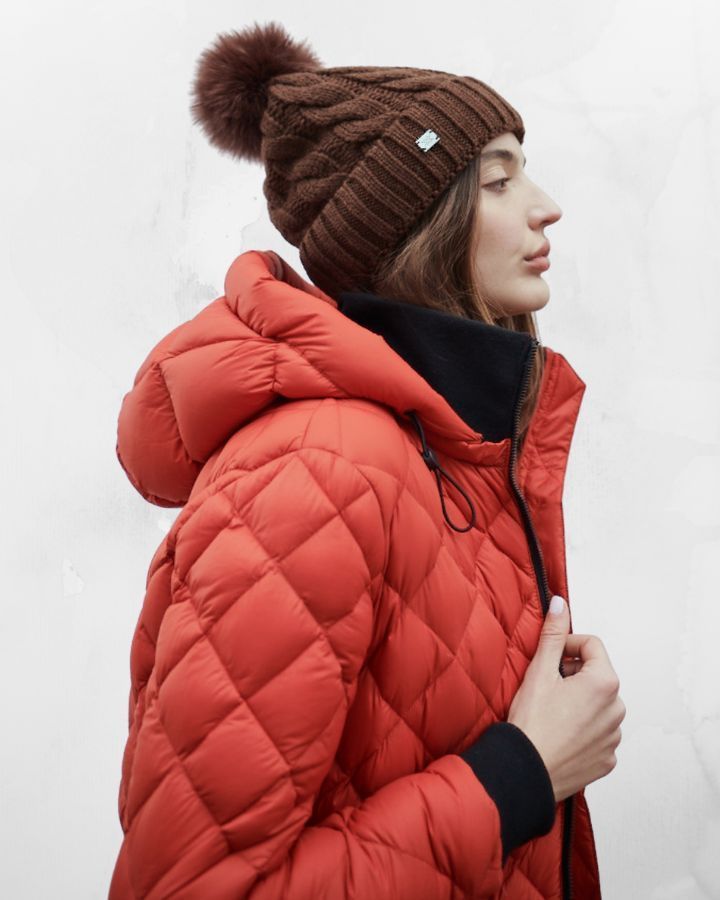 Tuque avec pompon détachable. Composition: 50% laine, 50% acrylique.