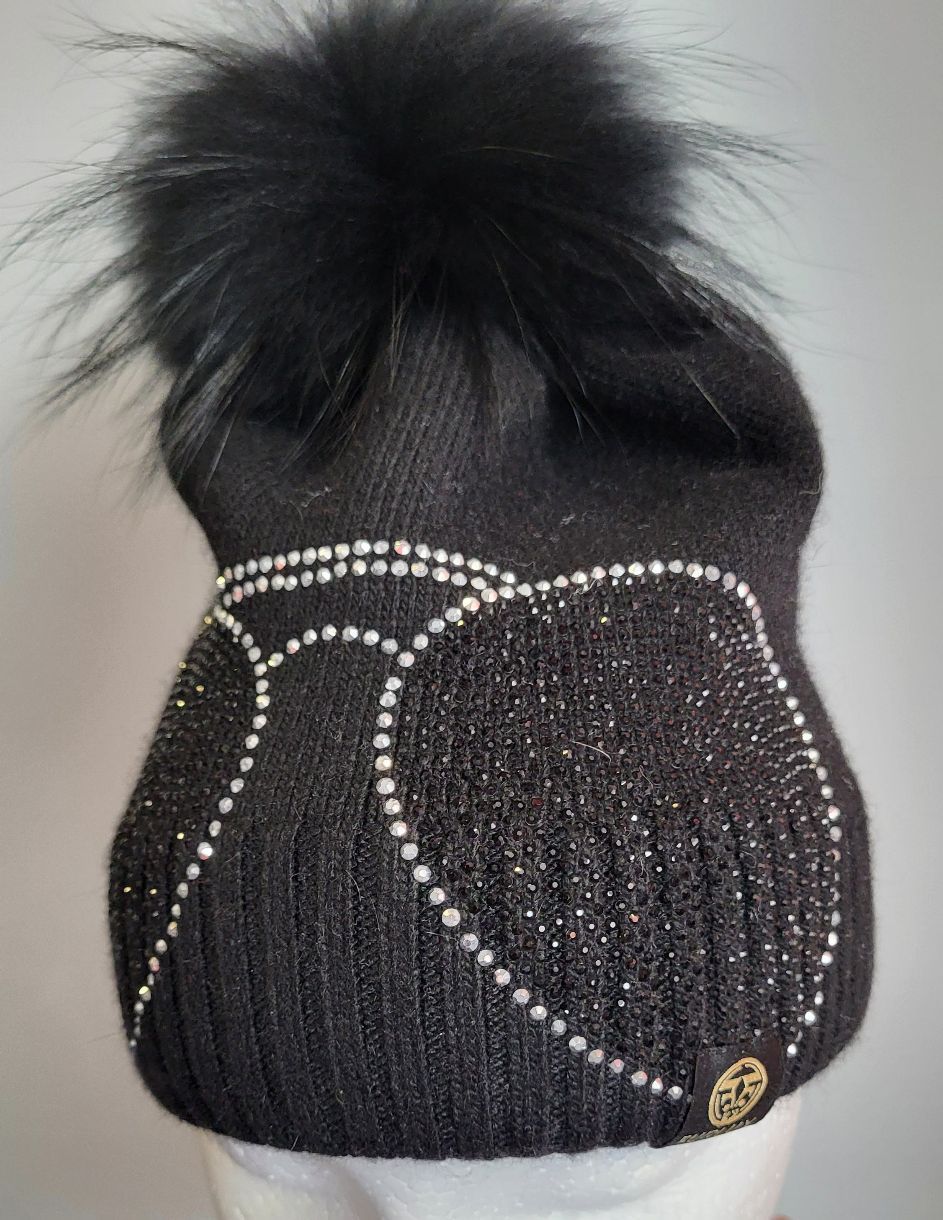 Tuque avec motif de lunettes orné de brillant avec pompom.
