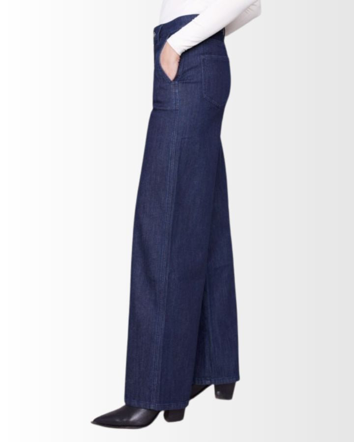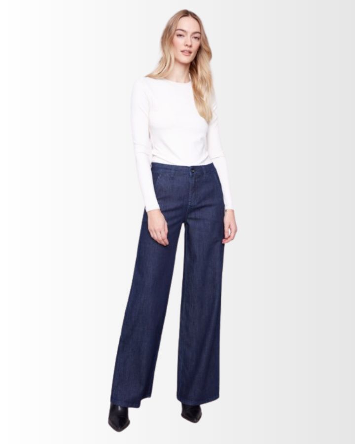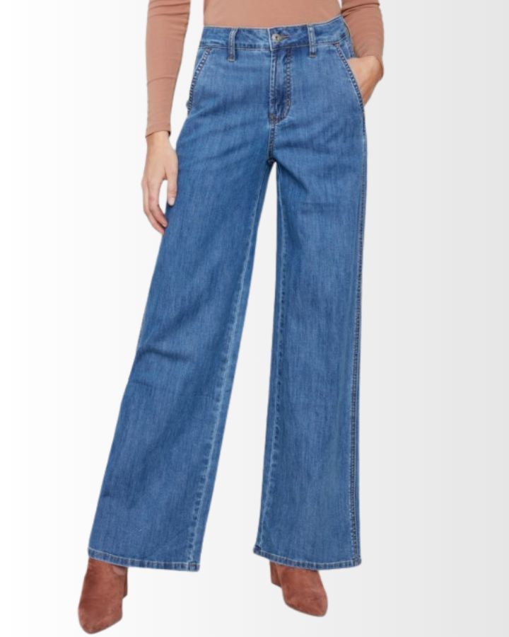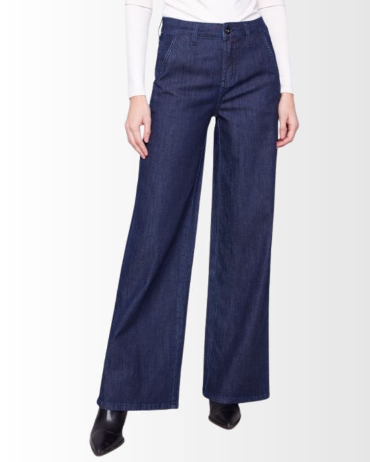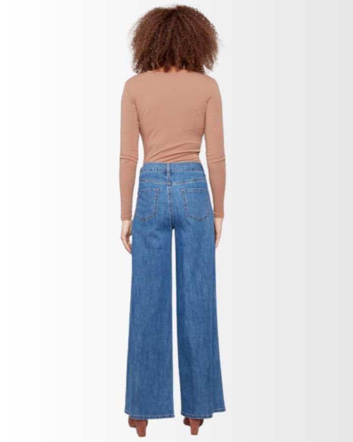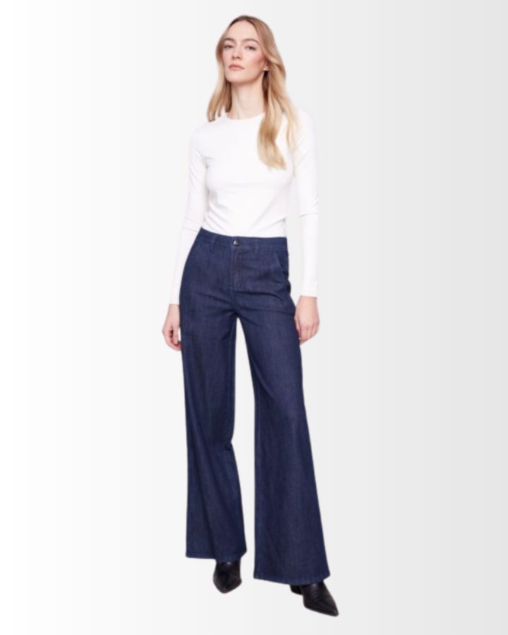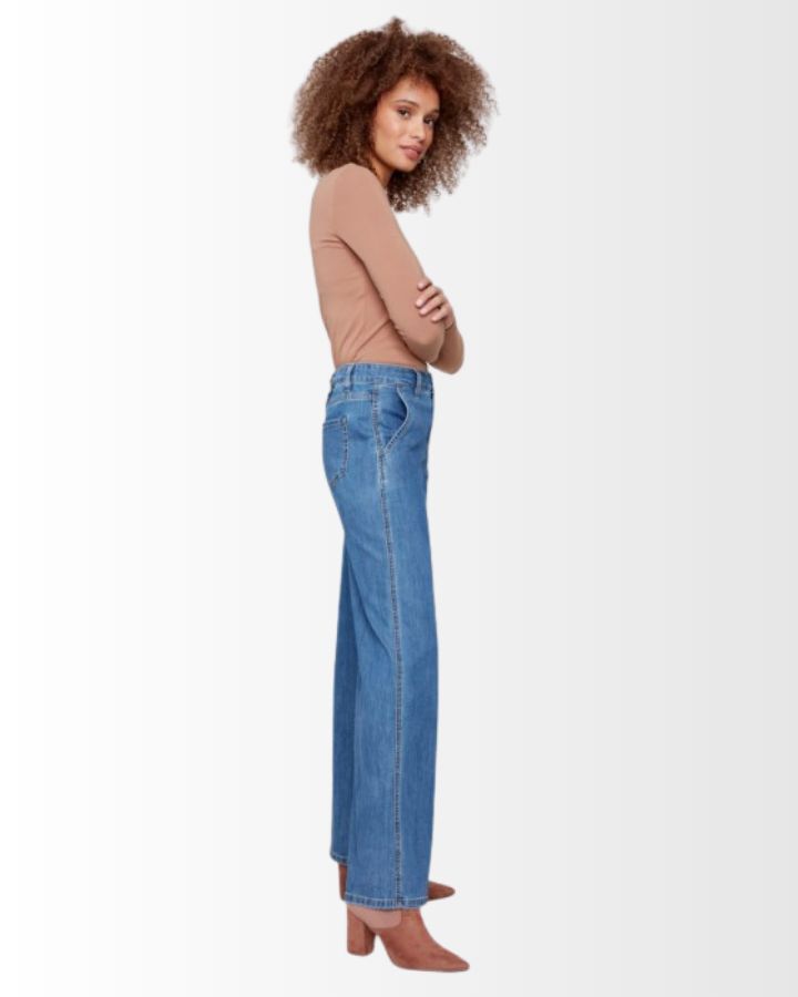 Ce pantalon en denim stretch à jambes larges allie confort et élégance avec sa coupe flatteuse et sa taille haute. Sa teinte et sa finition soignée lui donnent un style intemporel, facile à associer. Les poches fendues sur les côtés ajoutent une touche pratique sans compromettre la silhouette. Sa matière extensible assure une liberté de mouvement idéale pour un usage quotidien. À porter avec un haut ajusté ou une chemise fluide pour un look chic et décontracté.