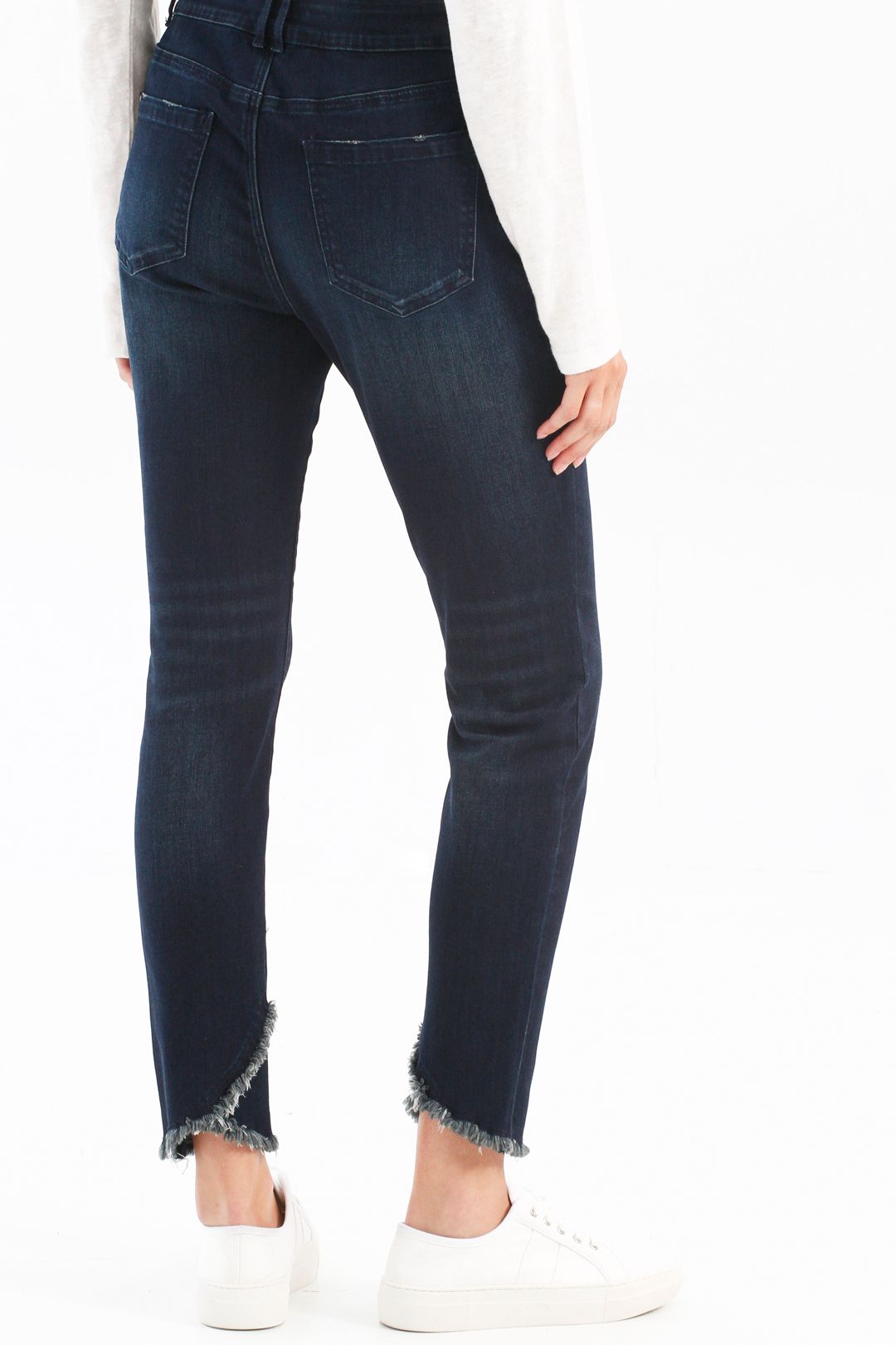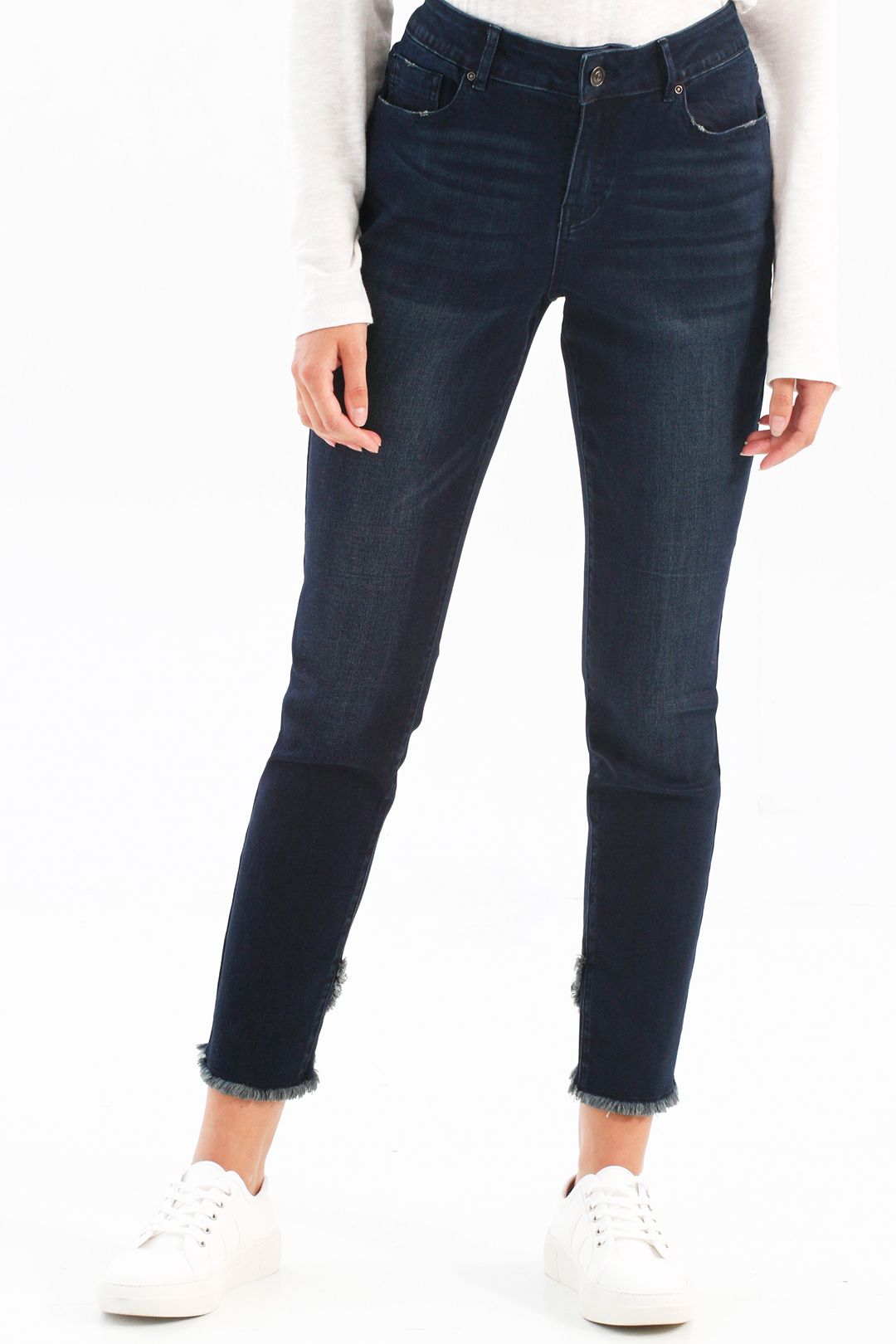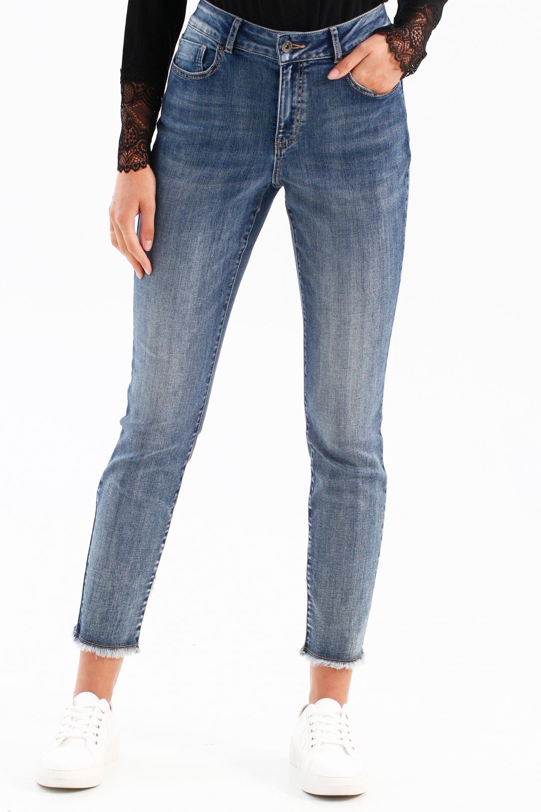 Jeans 5 poches de Charlie B présente une coupe slim extensible et un ourlet croisé dégagé.