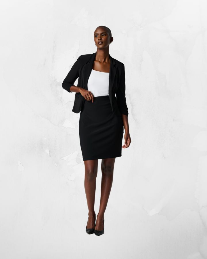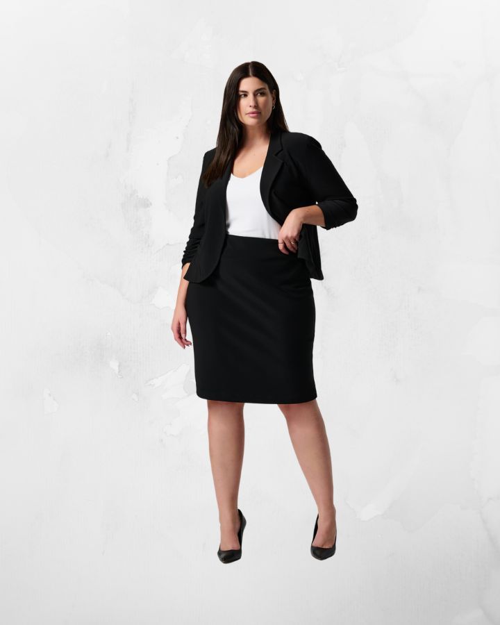 Luxueusement élégante et féminine, cette jupe crayon à enfiler est un vêtement essentiel pour toute garde-robe de bureau. Fabriqué dans un tricot soyeux de qualité et doté d'une taille élastiquée cachée, ce vêtement classique est aussi confortable qu'il est à la mode. - Tissu à mailles interlock - Taille élastique dissimulée - Non doublée
