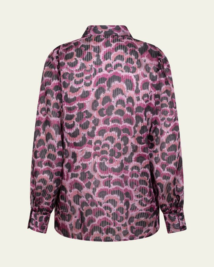 Cette blouse Esqualo à manches longues arbore un motif animalier original dans des tons de rose, violet et noir. Son tissu fluide légèrement plissé offre une texture élégante et un confort optimal. Le col classique et la fermeture boutonnée sur le devant ajoutent une touche raffinée et intemporelle. Les manches longues se terminent par des poignets boutonnés, assurant une coupe structurée et sophistiquée. Polyvalente, elle se porte aussi bien avec un jean casual qu’un pantalon chic pour un look moderne et audacieux. Un incontournable du dressing qui conjugue féminité, originalité et élégance.
