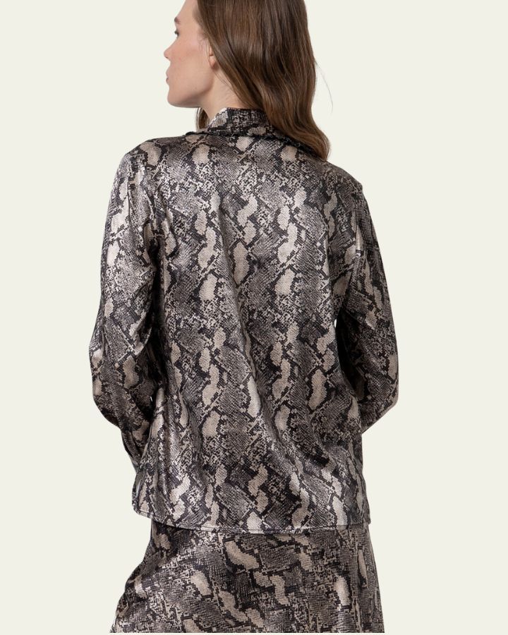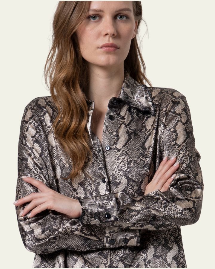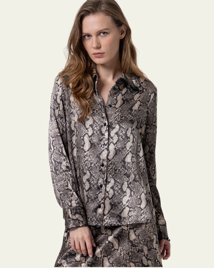 Opte pour un look audacieux avec cette chemise à motif animal. Son tissu fluide au fini satiné offre une allure chic et confortable, idéale du bureau à l’apéro. La coupe ample et les tons neutres apportent modernité et élégance. Fermeture boutonnée discrète et col classique pour une touche sophistiquée. Un incontournable pour les fashionistas à la recherche d’originalité.
