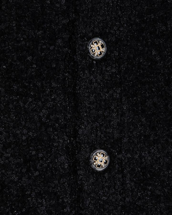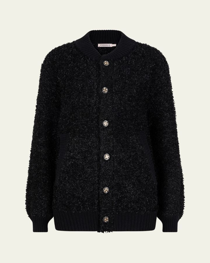 Ce cardigan noir ESQUALO allie confort et élégance grâce à sa texture bouclée et duveteuse. Son col rond et ses poignets côtelés apportent une touche raffinée, tandis que ses cinq boutons dorés ajourés ajoutent une note chic et sophistiquée. Deux poches discrètes à l’avant offrent un côté pratique sans compromettre le style. Doux et chaud, il est parfait pour les journées fraîches. Facile à associer, il se porte aussi bien avec un jean qu'une robe pour un look décontracté ou habillé. Un essentiel du vestiaire, entre modernité et douceur.
