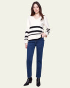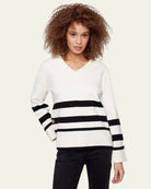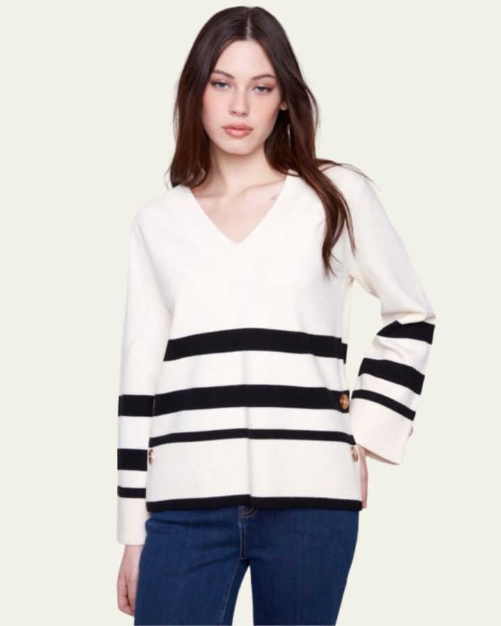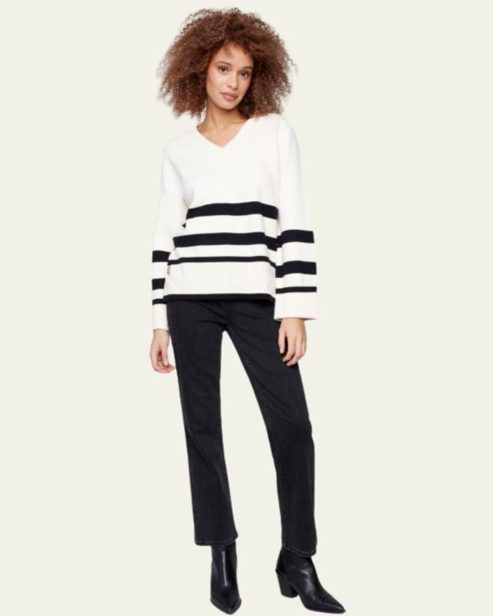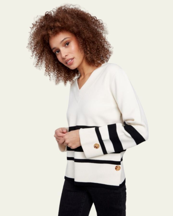 PULL A COL V RAYÉ AVEC LARGES POIGNETS