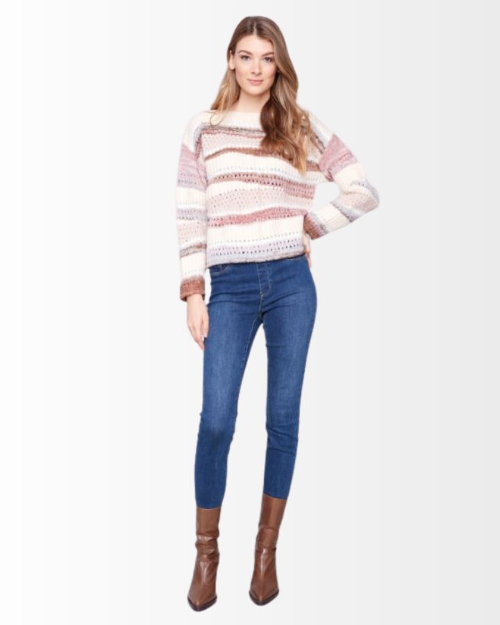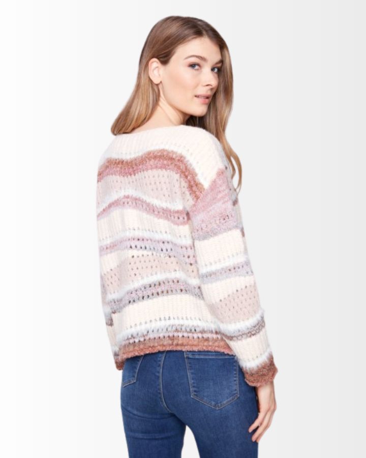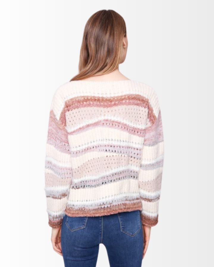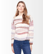 Ce pull à rayures multicolores est une invitation à la douceur et au confort. Ses bandes horizontales de différentes couelurs créent une harmonie délicate et féminine. Confectionné dans une maille souple et moelleuse, il enveloppe le corps avec légèreté. Sa coupe ample et décontractée en fait un allié parfait pour les journées fraîches. Facile à associer avec un jean ou un pantalon neutre, il apporte une touche cosy à votre look quotidien.