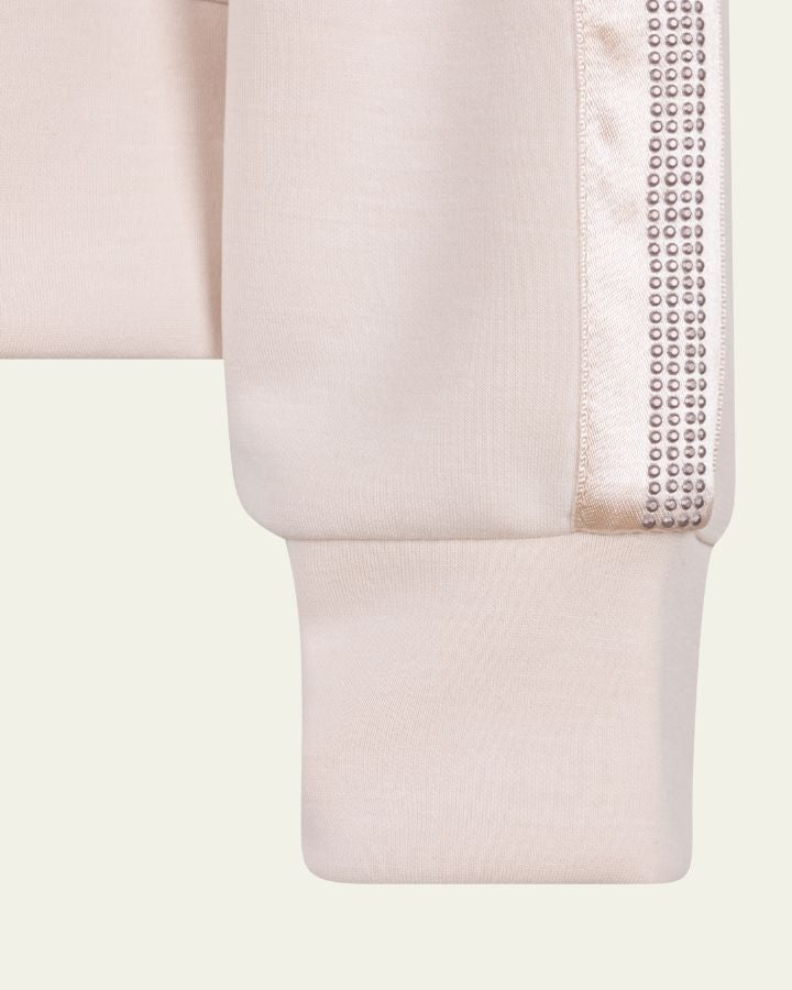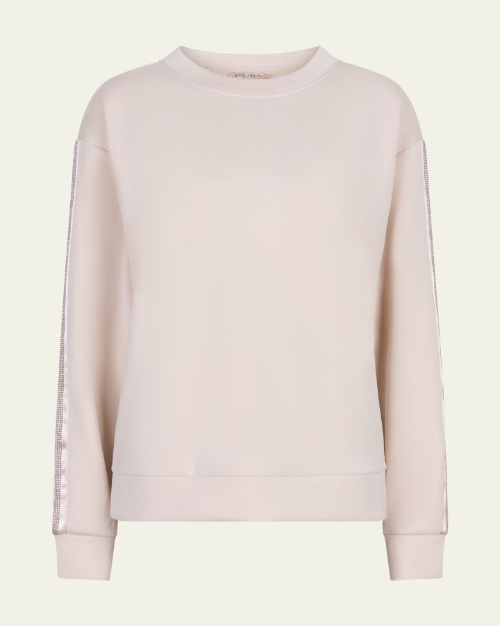 Ce pull clair à manches longues allie confort et élégance avec son tissu doux et sa coupe droite. Son col rond classique lui confère une allure intemporelle, facile à assortir à différentes tenues. Les manches sont ornées de bandes décoratives en strass qui apportent une touche de brillance et de sophistication. Sa légèreté et sa texture agréable en font une pièce idéale pour les journées fraîches. Polyvalent, il se porte aussi bien en look casual qu’en tenue plus habillée. Un indispensable du dressing qui conjugue style raffiné et confort absolu.