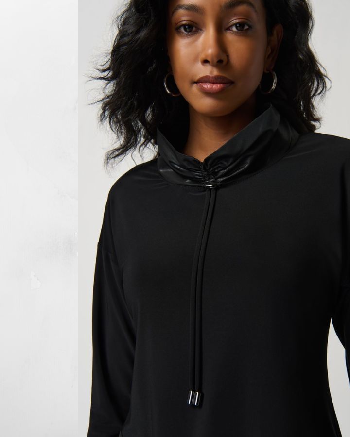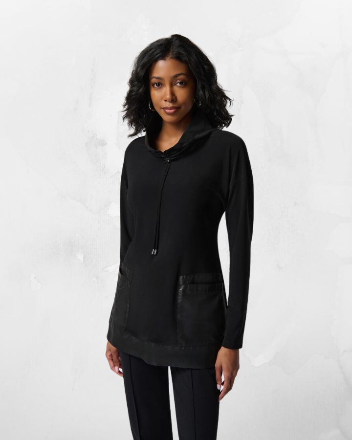 Cette tunique raffinée est le meilleur moyen de rendre votre tenue plus élégante sans en compromettre le confort. Les longues manches dolman et un col entonnoir muni de cordons de serrage lui donnent un style chic décontracté, tandis que les poches et les empiècements à l'ourlet la rendent pratique et confortable.