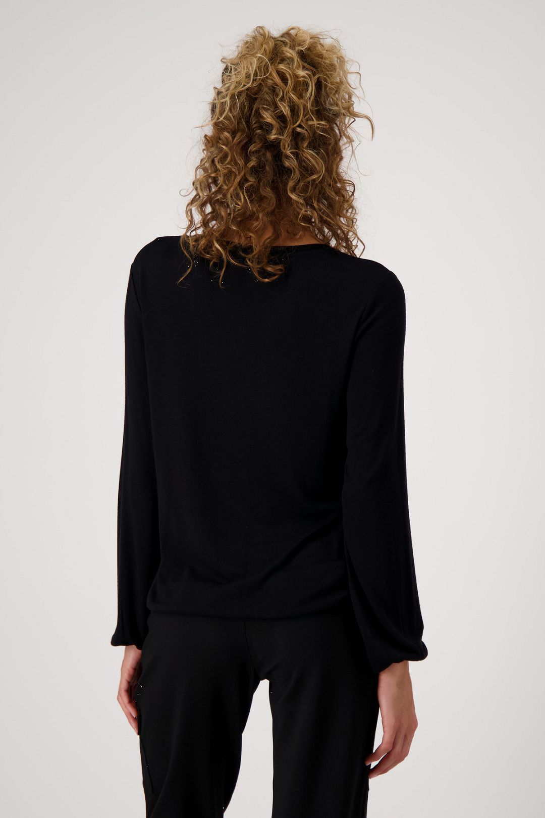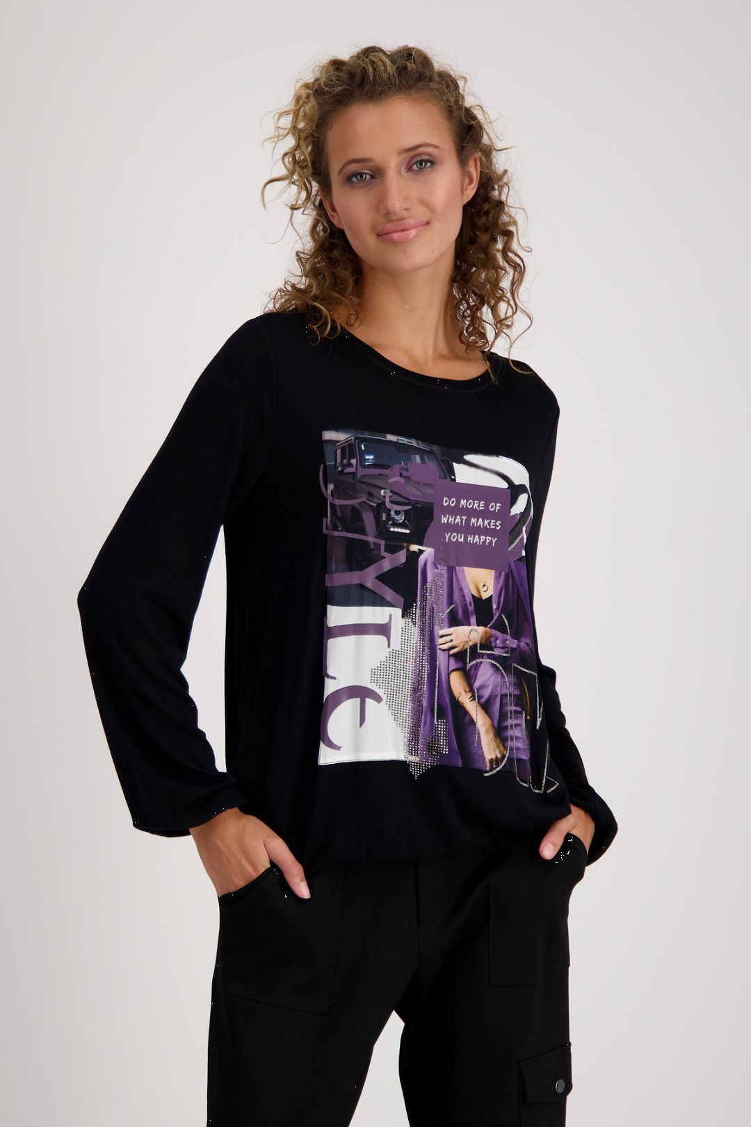 Beau chandail, manche longue, élastique à la taille et aux poignets, encolure ronde, imprimé avec pierres.