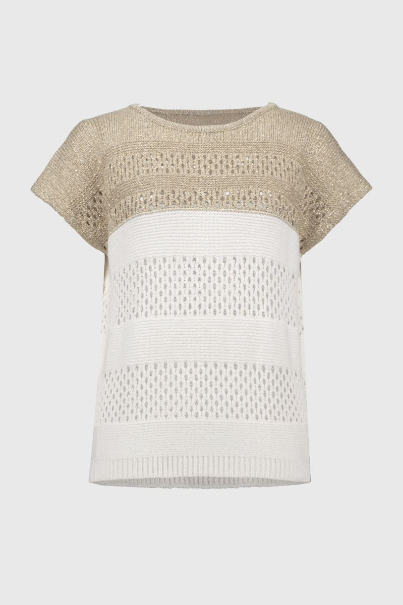 Apportez une touche de brillants à vos tenues décontractées avec ce pull en tricot métallisé à blocs de couleurs. Encadrée d’un décolleté de bateau et de manches dolman courtes, cette pièce présente des coutures ouvertes pour un style plus léger et plus aéré.