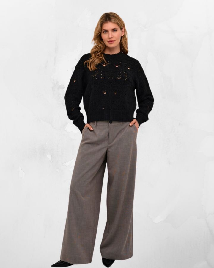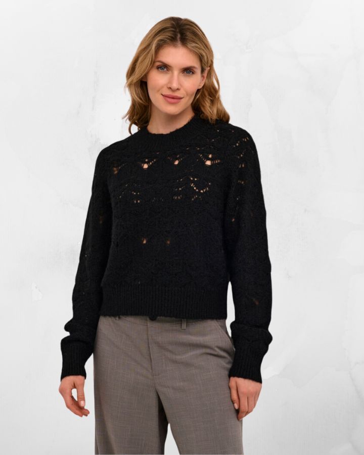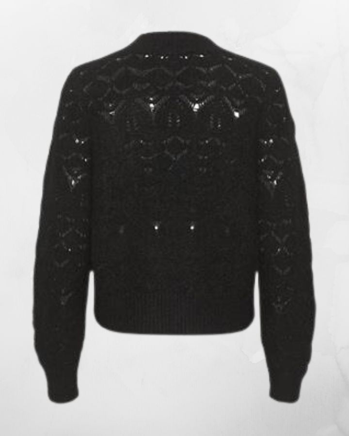 Découvrez notre pull à manches longues à la coupe décontractée, conçu pour allier confort et élégance. Sa longueur courte met en valeur votre silhouette tout en offrant une allure décontractée. Tricoté ajouré, ce pull se distingue par ses délicates broderies qui ajoutent une touche de légèreté. Les poignets, le bas et le col côtelés apportent une finition soignée et sophistiquée. Parfait pour les journées fraîches ou les soirées entre amis, ce pull est un indispensable de votre garde-robe.