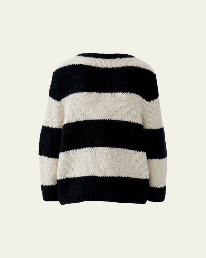 Ce pull à rayures horizontales noires et camel incarne la décontraction stylée. Avec sa coupe oversize, ses manches longues et son col rond classique, il offre une silhouette confortable et moderne. La maille souple et douce garantit un porté agréable tout au long de la journée. Idéal pour composer un look effortless avec un jean ou un pantalon fluide, c’est le basique graphique qu’on aime revisiter saison après saison.
