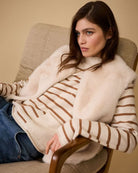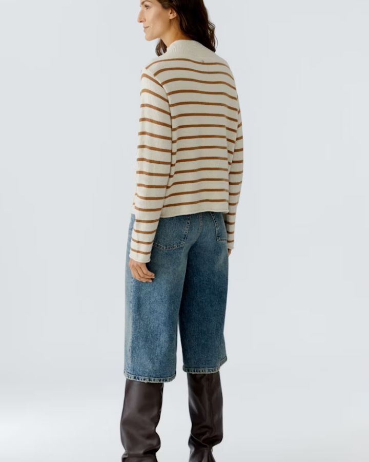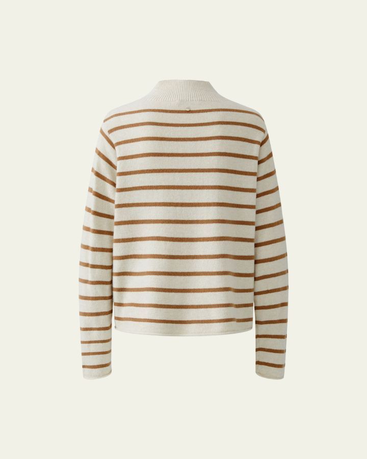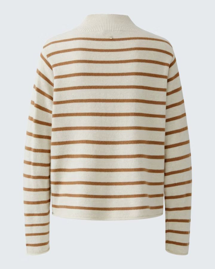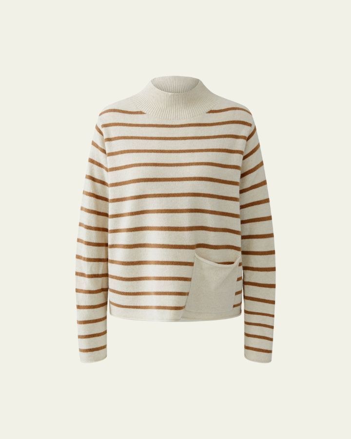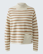 Ajoute une touche de chaleur et de style à ta garde-robe avec ce pull doux et confortable. Confectionné dans des tons neutres faciles à assortir, il présente des rayures horizontales marron sur un fond beige apaisant. Son col montant côtelé et sa poche plaquée sur le côté droit apportent à la fois praticité et élégance minimaliste. Parfait pour un look décontracté chic ou pour superposer en hiver.