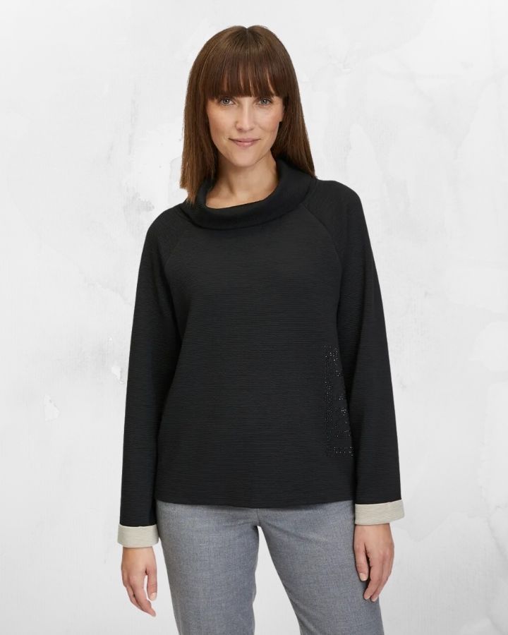 Selon la devise : Parfois, moins c'est plus ! Ce sweat-shirt de Betty Barclay avec des manches raglan et un léger col roulé est parfait pour un look décontracté mais toujours féminin. Le sweat-shirt est complété par des strass étincelants sur le côté qui lui donnent un petit quelque chose en plus.