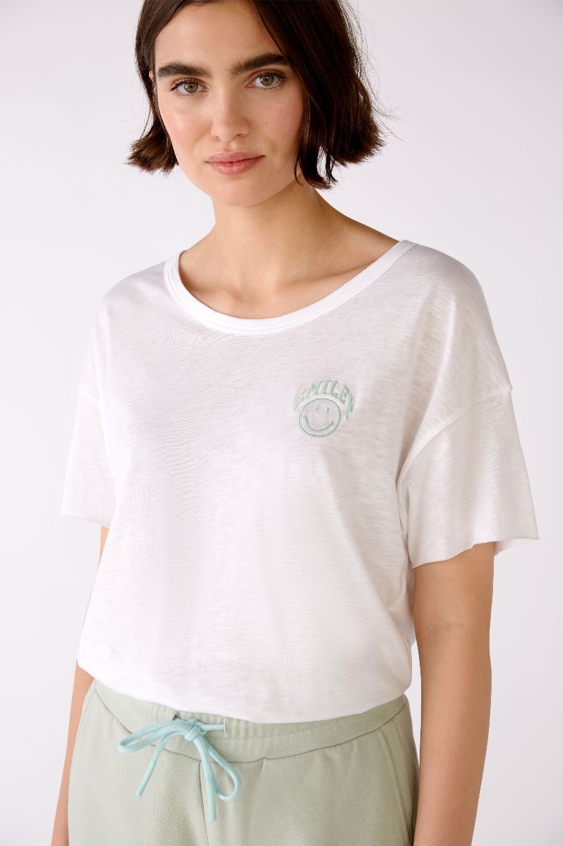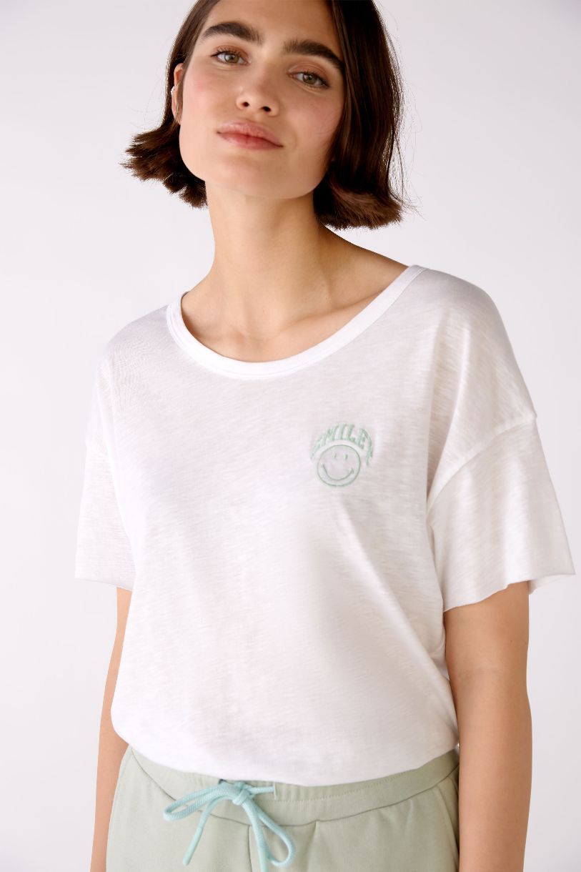 T-shirt imprimé '' Sourire '', col rond, manches courtes.