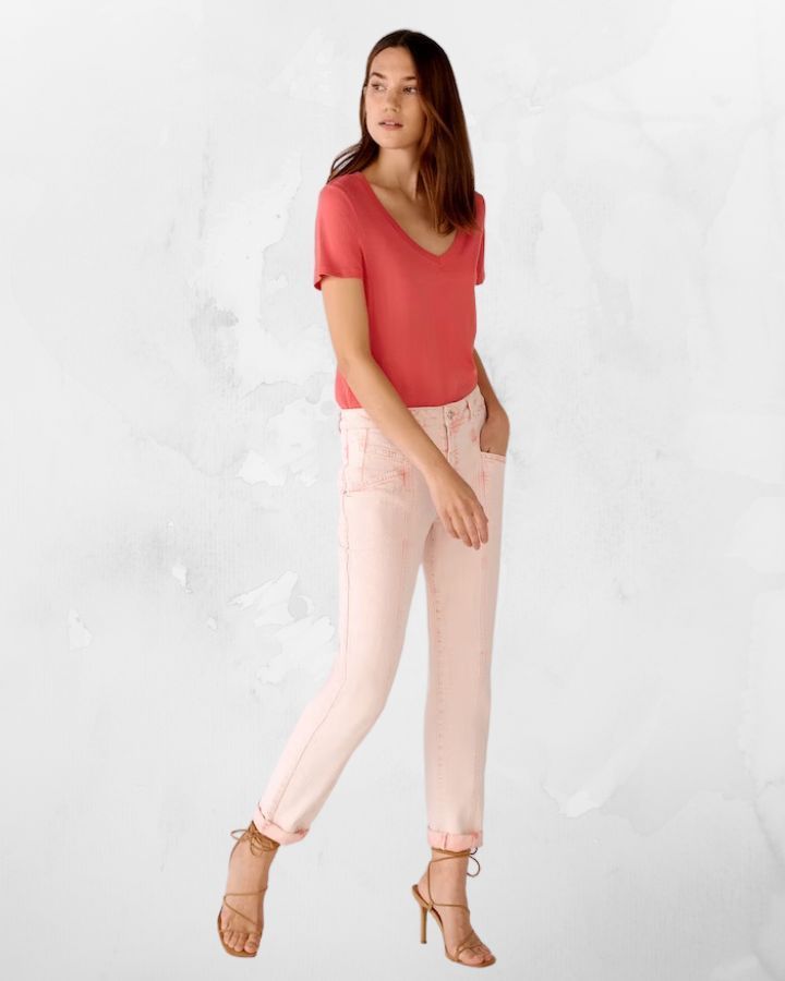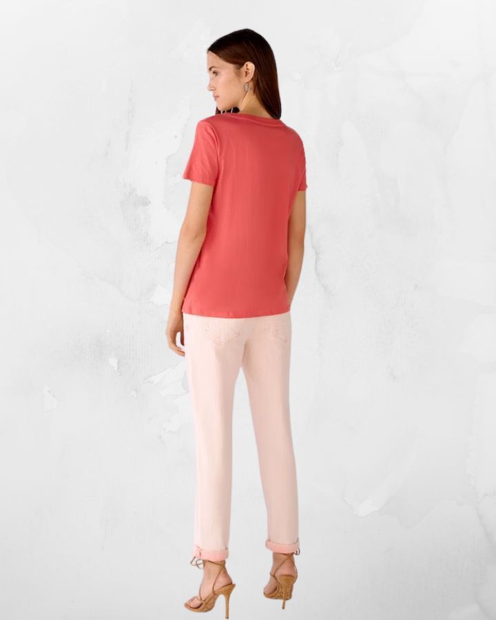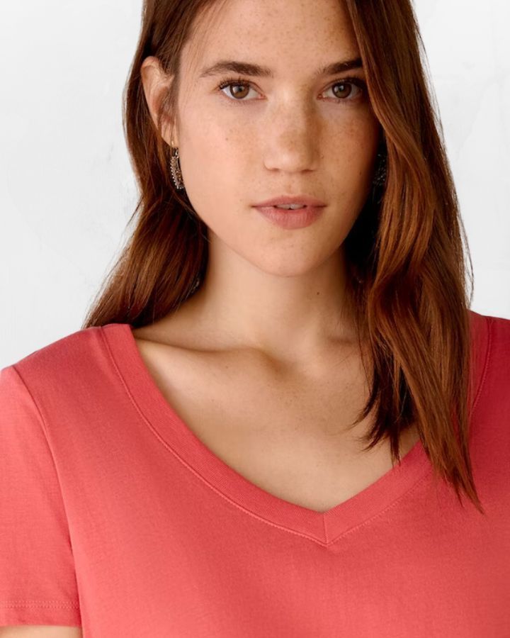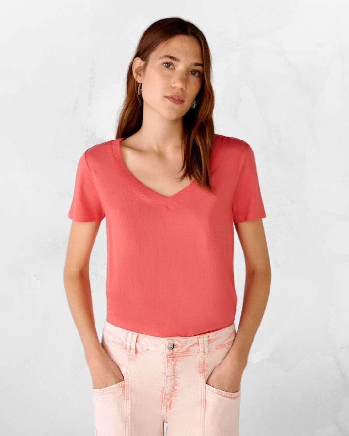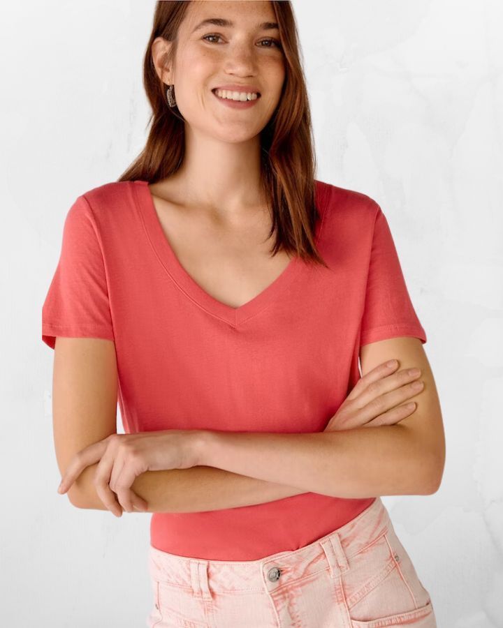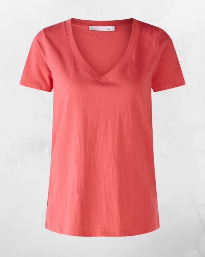 Col en V profond, manches courtes, petit logo "oui" brodé à la base, doux Au toucher, coupe droite