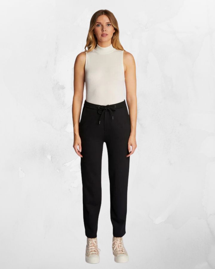 Ce haut moulant est tricoté en viscose LENZING™ ECOVERO™ confortable avec du fil pailleté scintillant incorporé. Un col roulé complète le design sans manches.