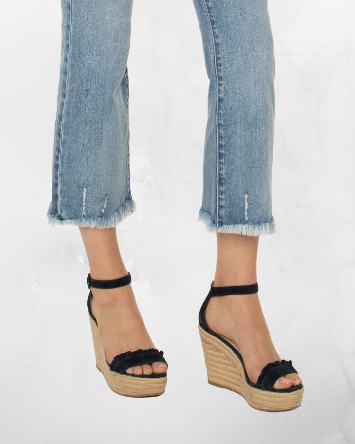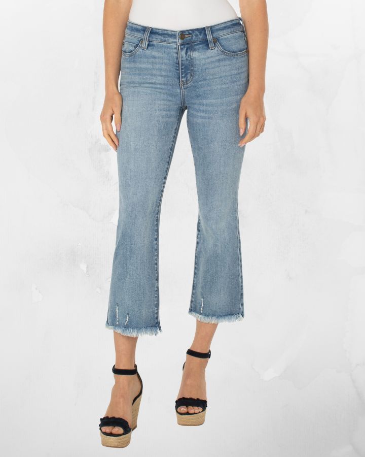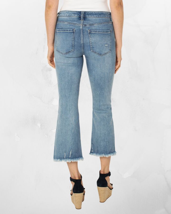 Coupé dans une silhouette du moment, ce jean est parfait pour toutes les festivités ! Sentez-vous bien et soyez superbe dans notre Hannah Crop Flare. Portez facilement ce jean habillé ou décontracté. Il est pour toutes les occasions. DÉTAILS: Entrejambe 25-1/2'' Élévation avant de 10-1/4 po ; ouverture de jambe de 18 po Mi-taille Détails de style 5 poches Fermeture à bouton logo unique Passants de ceinture Le mannequin mesure 5'9'' et porte une taille S COMPOSITION : 99% Coton, 1% Lycra ENTRETIEN : Lavage en machine à froid, laver séparément, laver à l'envers, uniquement un agent de blanchiment sans chlore si nécessaire, sécher par culbutage à basse température, repasser à basse température si nécessaire ou nettoyer à sec.
