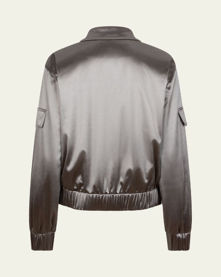 Ce blouson argenté allie élégance et modernité avec sa finition brillante et sophistiquée. Son col classique et sa fermeture éclair sur le devant offrent une touche structurée et raffinée. Les poches à rabat sur les manches ajoutent du style tout en restant fonctionnelles. Les poignets et l’ourlet élastiques assurent un ajustement confortable et une belle tenue. Polyvalent, il se porte aussi bien sur un look casual que pour une allure plus habillée. Un incontournable du dressing qui conjugue confort, allure urbaine et chic intemporel.