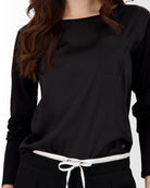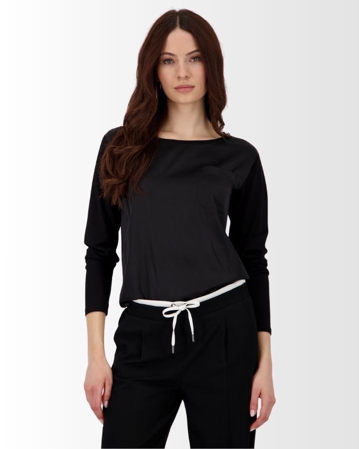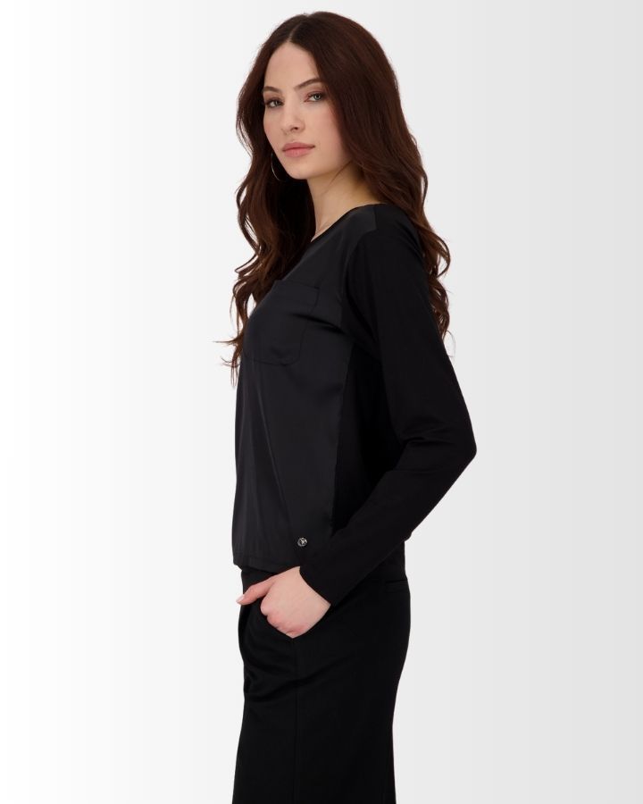 Cette blouse noire à manches longues séduit par son élégance minimaliste et sa matière satinée qui lui confère une allure chic et raffinée. Son col rond classique et sa poche poitrine discrète ajoutent une touche de sophistication subtile. Confectionnée dans un tissu fluide et doux, elle offre un confort optimal tout en structurant la silhouette. Parfaite pour un look professionnel ou une tenue de soirée, elle se marie aisément avec un pantalon habillé ou une jupe. Un essentiel intemporel à intégrer dans toute garde-robe moderne.