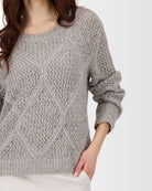 Ce pull gris en maille ajourée séduit par son motif en losanges élégant et sa texture délicate. Conçu avec une coupe confortable et des manches longues, il offre chaleur et style pour les journées fraîches. Son col rond classique s’adapte à toutes les silhouettes et se marie facilement avec vos tenues préférées. Fabriqué dans une matière douce et respirante, il allie confort et raffinement. Un indispensable chic pour une garde-robe automne-hiver tendance.