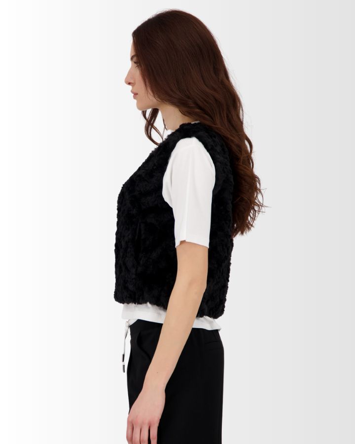 Ce gilet sans manches en fausse fourrure noire apporte une touche chic et cosy à toutes vos tenues. Sa texture douce et son design élégant en font une pièce idéale pour superposer sur un t-shirt ou une blouse. Léger mais chaleureux, il offre confort et style sans compromis. Parfait pour un look urbain tendance, du bureau à vos sorties en ville. Un incontournable de mi-saison à adopter sans hésiter.