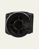 Cette ceinture noire au tissage subtil se distingue par sa boucle "C" stylisée, discrète et sophistiquée. Facile à assortir, elle apporte une touche chic à tous les looks, du jean au pantalon habillé.