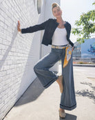 DÉTAILS : Entrejambe : 76 cm ; Taille mi-haute ; Hauteur de fourche : 26 cm ; Ouverture de jambe : 69 cm ; Jambes larges ; Ceinture intégrée avec passants ; Braguette zippée avec bouton ; Poches passepoilées à l'avant ; Poches plaquées à l'arrière ; Détails d'ombre aux coutures latérales et à l'ourlet