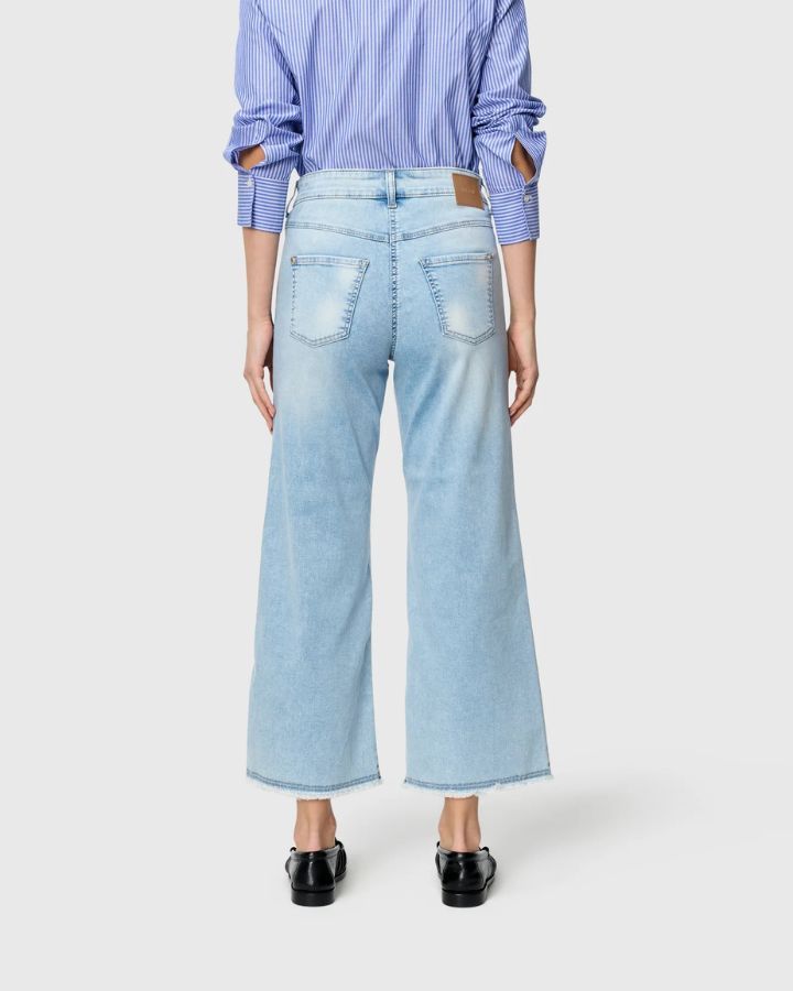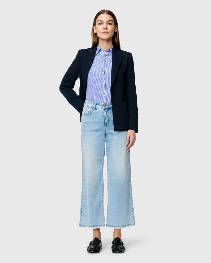 Jean léger et ample en modal. Coupe large, jambes larges et droites, taille mi-haute confortable, 5 poches, ourlet ouvert. Denim DREAM Wonder Light, hautement élastique, en modal, matière très légère, toucher exceptionnellement doux, effet sculptant, excellente tenue, look authentique, doux pour la peau, confort optimal.