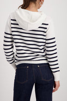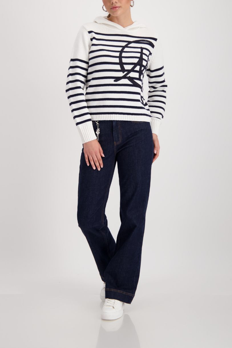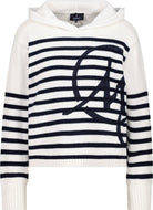 Coton de haute qualité, texture douce, motif intarsie, rayures emblème, coupe classique, capuche, manches longues, poignets et ourlet côtelés