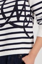 Pull élégant en maille de coton de haute qualité, orné de motifs intarsia et de rayures, avec une capuche décontractée – un modèle stylé et moderne