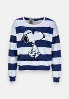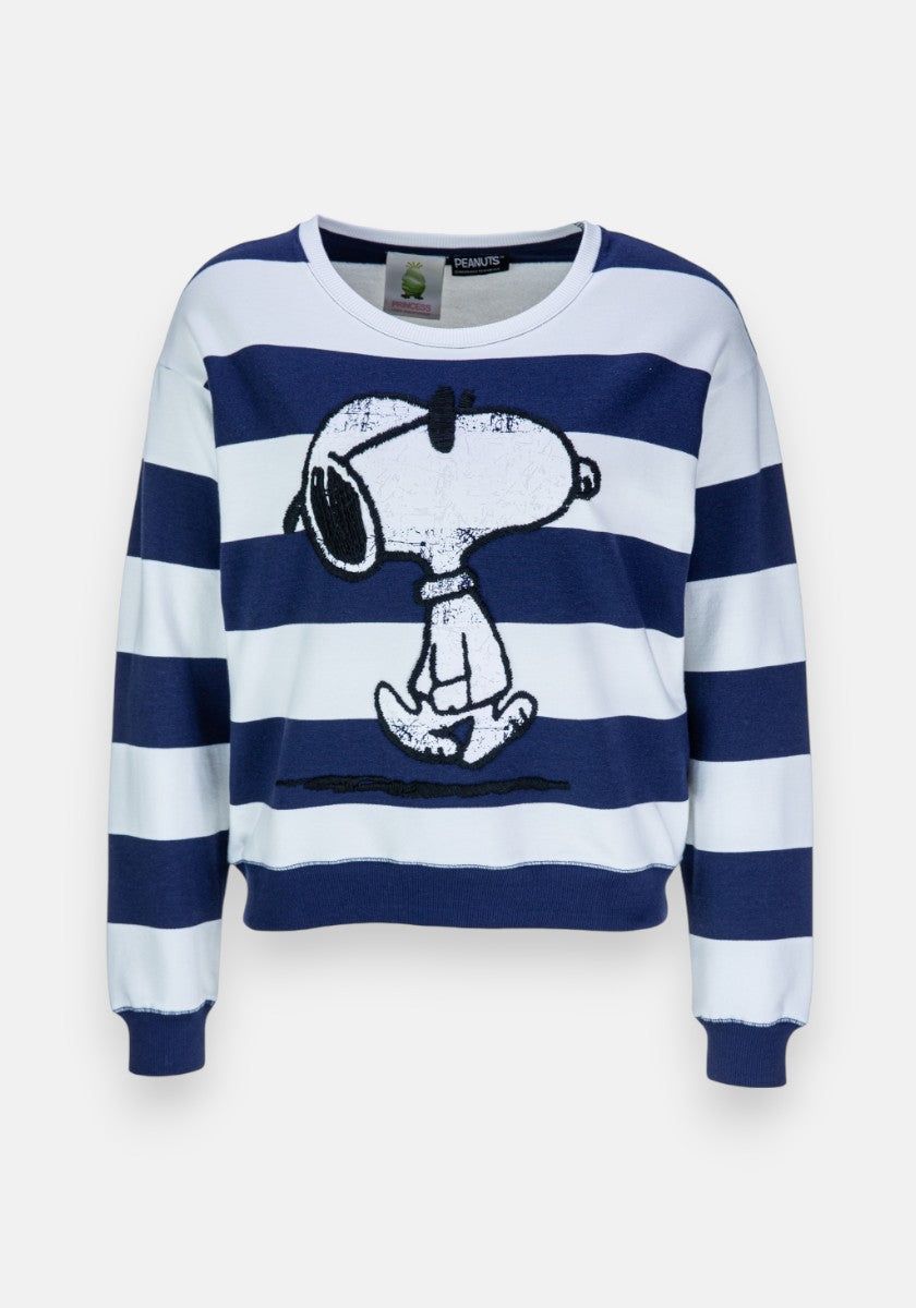 Sweat-shirt rayé en mélange de coton. Col rond, manches longues à épaules tombantes et poignets élastiqués. Bas élastiqué. Imprimé Snoopy brodé.