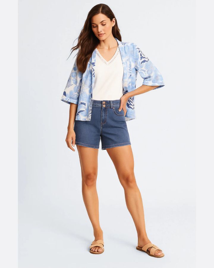 Pour un look sport et sexy, nous vous proposons le short SOPHIA. Optez pour ce short court & léger au look de denim avec une bande de taille large et confortable qui saura affiner votre taille et mettre vos jambes en valeur. •TAILLE HAUTE. •PANNEAU QUI RETIENT LE VENTRE. •ENTREJAMBE 5". •FACILE D'ENTRETIEN. 68% coton / 20% polyester / 11% rayonne / 1% spandex. Denim twill extensible. Lavage à la machine à l'eau froide. Suspendre pour sécher ou par culbutage. Ne pas javelliser.