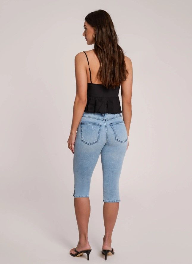 Découvrez notre modèle Blue Air avec fentes latérales, dans un délavage léger — une pièce élégante et confortable à ajouter à votre collection de denim. Dotés d'une taille classique et d'une entrejambe de 17 pouces (environ 43 cm), ces capris offrent une coupe flatteuse, idéale pour les journées plus chaudes. Les discrètes fentes latérales apportent une touche d'originalité, tandis que les détails en cuivre, comme le bouton à logo YJ et les rivets, leur confèrent une finition soignée. Conçus avec des coutures ton sur ton et une fermeture éclair YKK pour plus de durabilité, ces jeans sont complétés par un patch en cuir végétalien à la taille arrière, alliant style et respect de l'environnement.