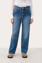 Ce jean en denim bleu est un incontournable de la garde-robe. Fabriqué à partir d'un tissu de haute qualité, il présente une allure solide et durable tout en offrant un confort optimal. Sa coupe droite et ample convient à toutes les silhouettes, tandis que sa taille haute sublime la silhouette et assure un maintien parfait. Les poches avant et arrière, fonctionnelles et pratiques, complètent ce modèle classique. Le design légèrement effiloché au bas des jambes ajoute une touche de décontraction et de modernité. Parfait pour un look casual ou même plus sophistiqué, ce jean se marie aisément avec une chemise, un t-shirt, ou un pull pour une tenue polyvalente.