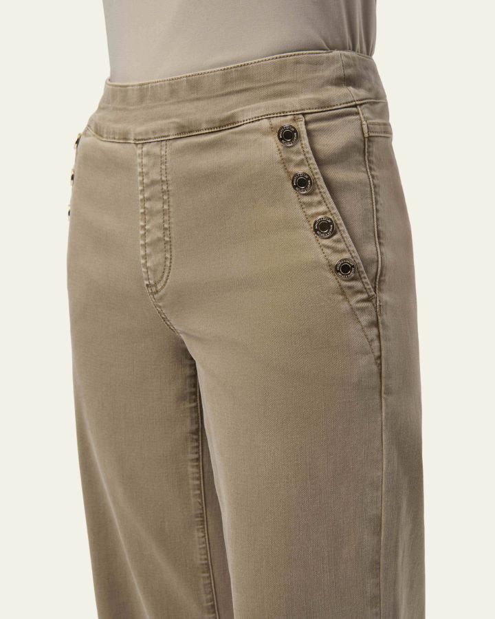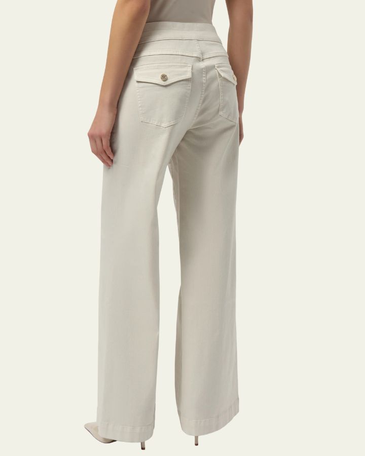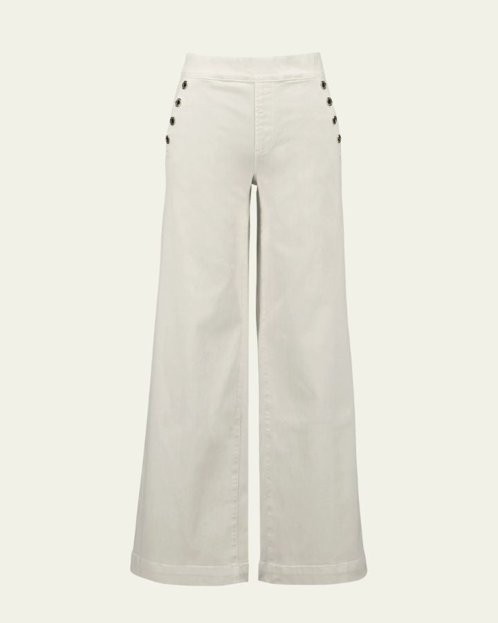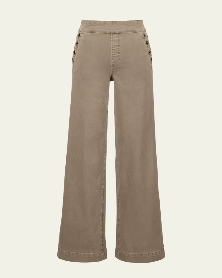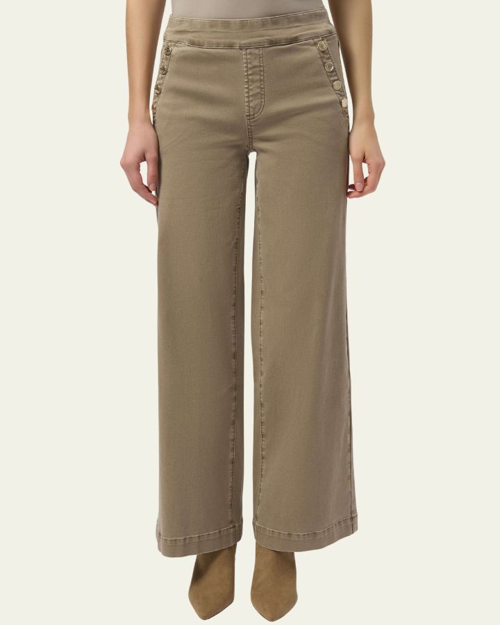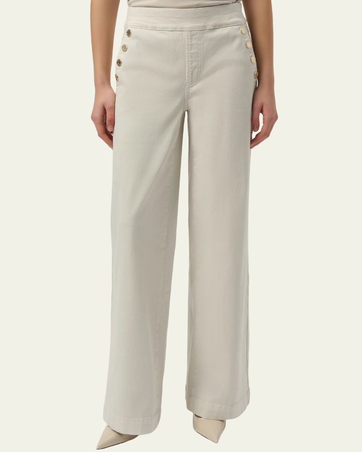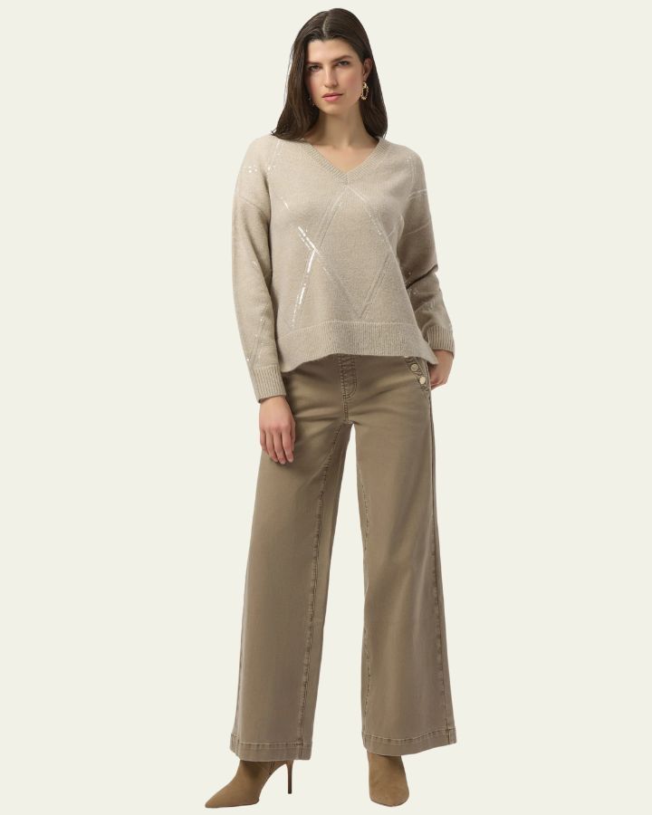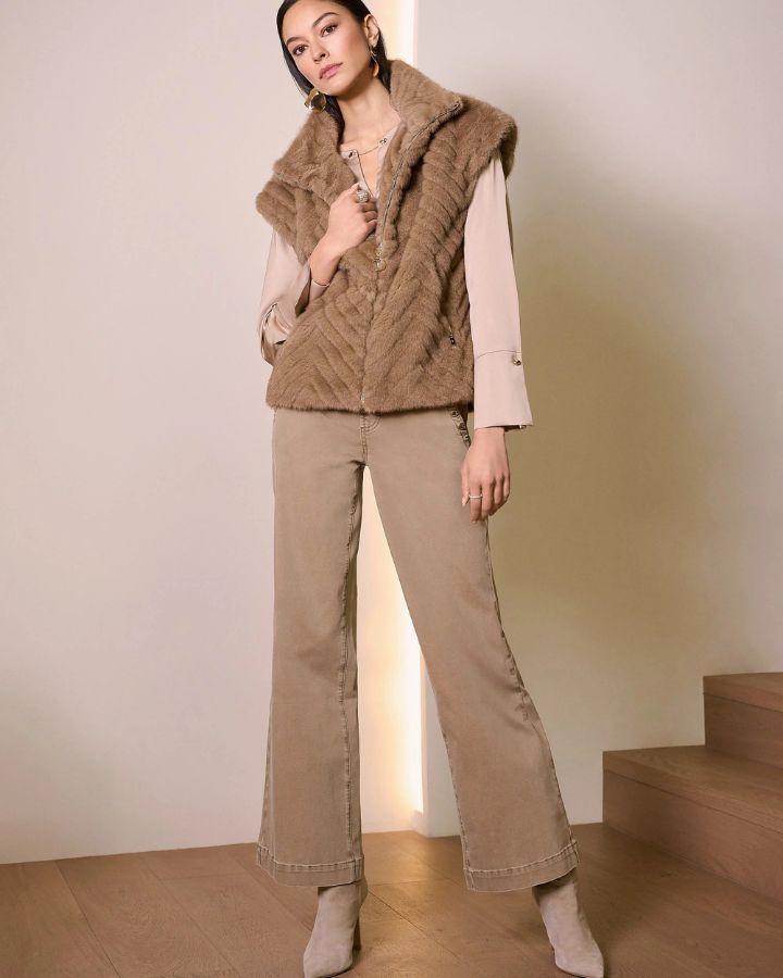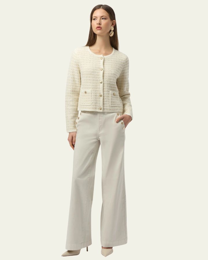 Ce pantalon au tissu fluide incarne l’élégance moderne avec une touche rétro. Sa taille haute flatteuse est soulignée par six boutons dorés décoratifs, apportant une note sophistiquée à la silhouette. La coupe longue et évasée allonge la jambe, idéale pour un look raffiné au quotidien ou une occasion spéciale. À associer avec un haut ajusté pour une allure structurée ou une blouse fluide pour plus de légèreté.