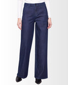 Ce pantalon en denim stretch à jambes larges allie confort et élégance avec sa coupe flatteuse et sa taille haute. Sa teinte et sa finition soignée lui donnent un style intemporel, facile à associer. Les poches fendues sur les côtés ajoutent une touche pratique sans compromettre la silhouette. Sa matière extensible assure une liberté de mouvement idéale pour un usage quotidien. À porter avec un haut ajusté ou une chemise fluide pour un look chic et décontracté.