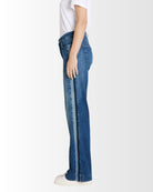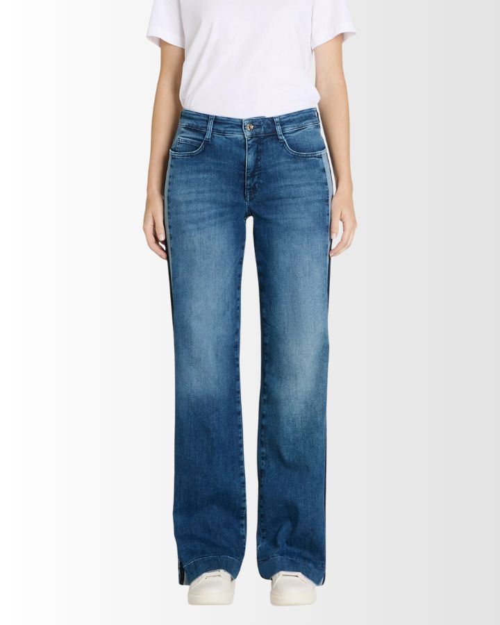 Ce jean bleu taille haute revisite le classique du denim avec une touche moderne et originale. Sa coupe droite et ses finitions légèrement délavées offrent un look casual et tendance. Les bandes sur les côtés ajoutent une note sportive et dynamique, idéale pour se démarquer avec style. Doté de poches avant et arrière, il allie praticité et esthétique. Parfait pour un look urbain, il se porte aussi bien avec des baskets qu’avec des bottines. Un essentiel revisité pour une allure affirmée.
