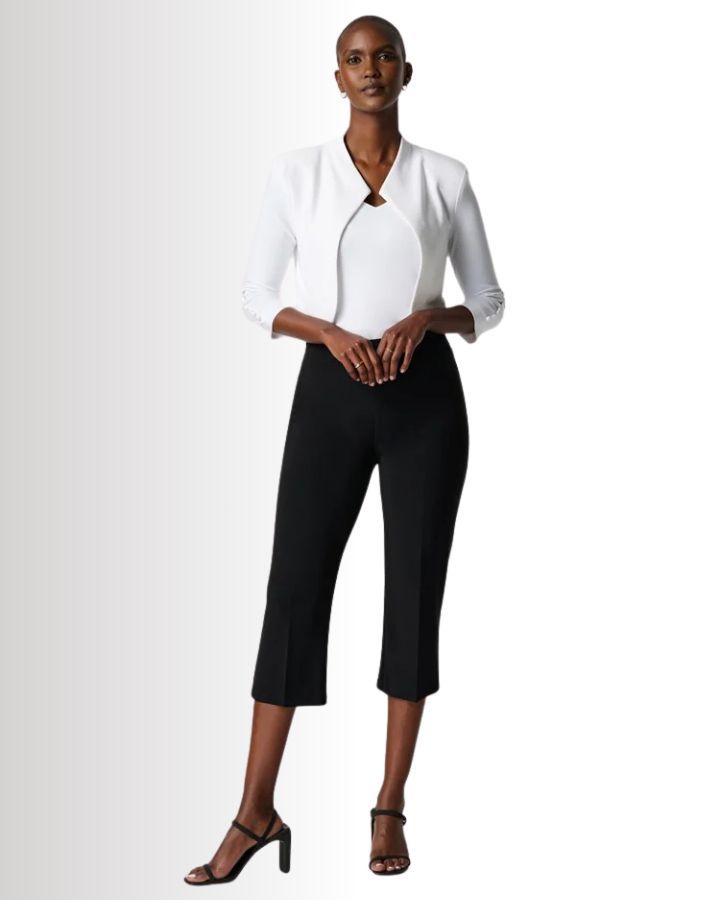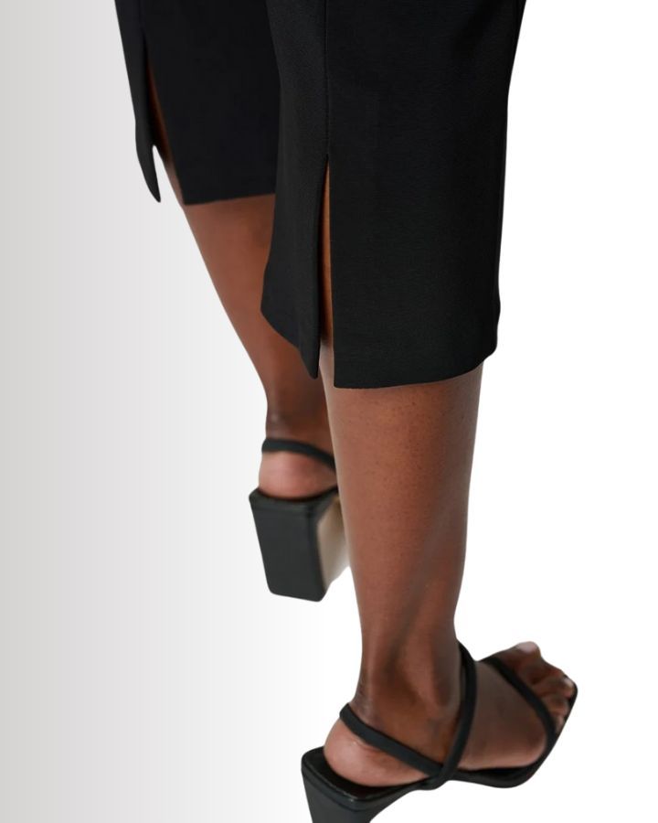 Ce pantalon chic est un essentiel pour toute garde-robe moderne. Conçu en longueur trois-quarts, il épouse la silhouette avec élégance grâce à son tissu extensible et ajusté. Sa coupe épurée, sans poches visibles ni distractions, met l'accent sur la simplicité et le raffinement. Idéal pour toutes les occasions, il se combine parfaitement avec un haut chic et des talons pour une tenue sophistiquée.