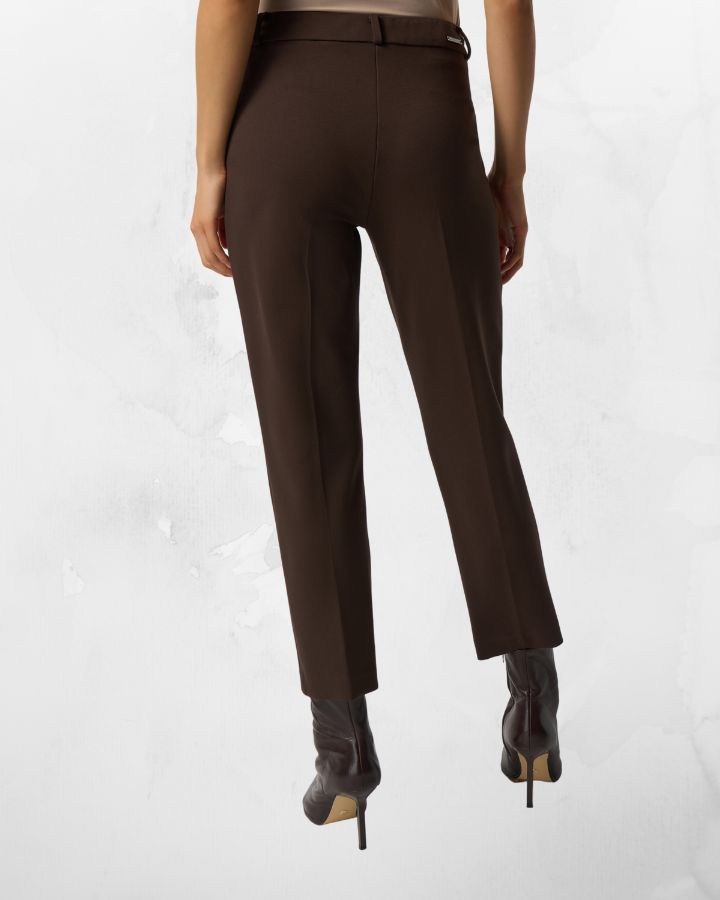 Ce pantalon en point de Rome vous donnera l'impression d'être une déesse italienne. Confectionné en tricot épais, il épousera votre silhouette de manière idéale. De plus, les passants et les poches ajoutent fonctionnalité sans compromettre le style. Et n'oublions pas la fausse braguette : qui dit qu'il est impossible d'être élégante ET confortable? Ce pantalon conviendra à une tenue pour une occasion spéciale ou simplement pour rehausser votre style au quotidien.