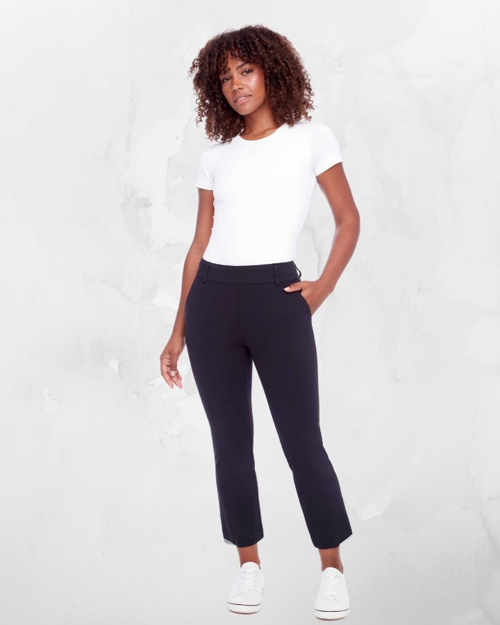 Un retour rétro avec une touche moderne et minimaliste, le kick-flare fait un retour triomphant sur la scène de la mode cette saison. Le look est frais et net avec un vernis décontracté, dégageant un luxe discret qui semble tout aussi élégant lors des réunions matinales que des rendez-vous de jeu avec les enfants. Et avec en prime un tissu de compression frais, la coupe est aussi flatteuse que possible.