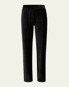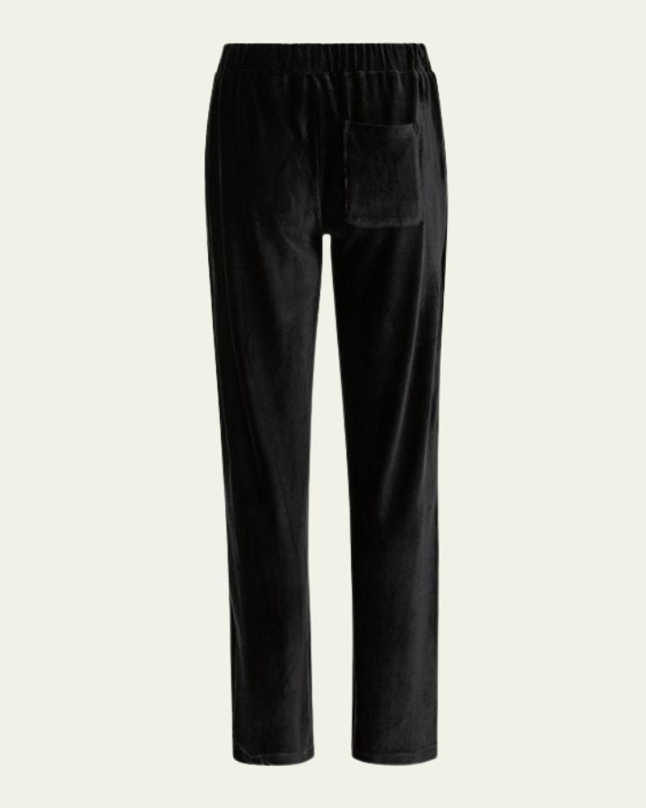 Ce pantalon noir en velours associe confort et élégance avec sa coupe droite intemporelle.