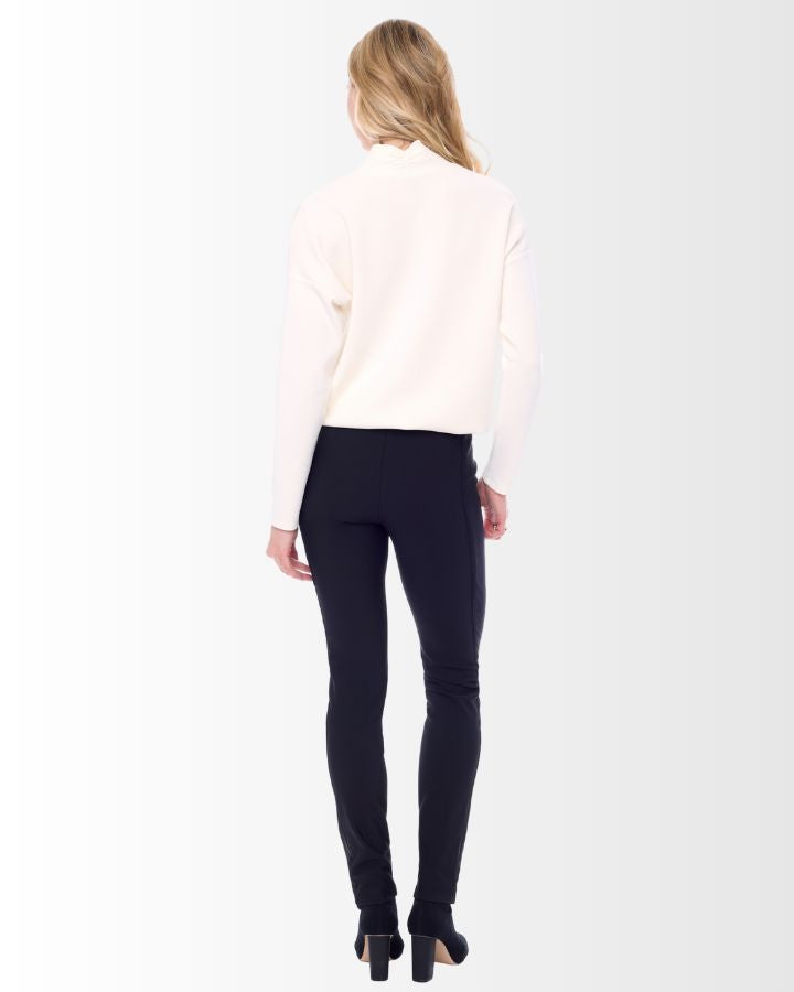 Ce pantalon noir incarne l’élégance minimaliste avec sa coupe fluide et sa taille haute flatteuse. Confectionné dans un tissu épais et lisse, il offre une tenue impeccable et un tombé structuré. Sa ceinture plate sans fermeture apparente assure un look épuré et un confort optimal. Parfait pour un style chic et professionnel, il se marie aisément avec des tops ajustés ou des blouses sophistiquées. Un incontournable polyvalent pour une allure raffinée en toute simplicité.