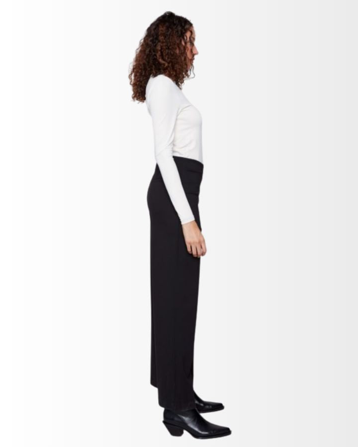 Ce pantalon ample noir à taille haute incarne la sophistication avec sa coupe droite et fluide. Confectionné dans un tissu léger au tombé impeccable, il allonge la silhouette tout en offrant un confort absolu. Son design épuré permet de le marier facilement à des pièces fortes ou classiques. C’est le pantalon parfait pour passer du bureau à une soirée chic sans faux pas. Idéal pour celles qui cherchent une allure sobre mais affirmée.