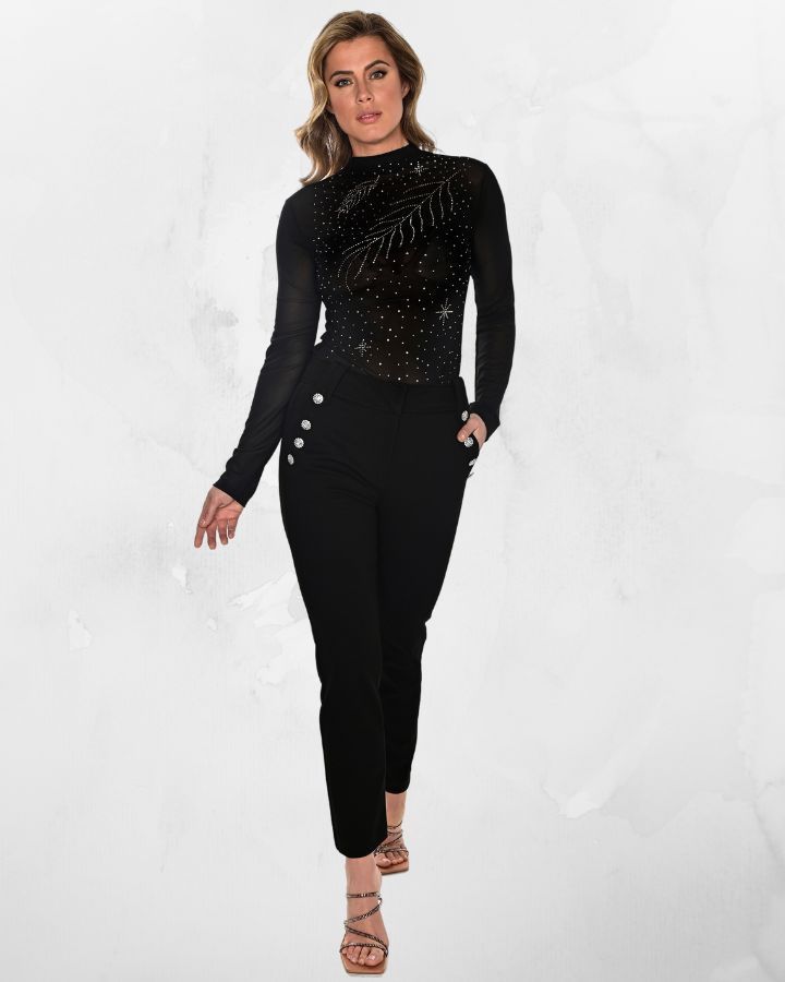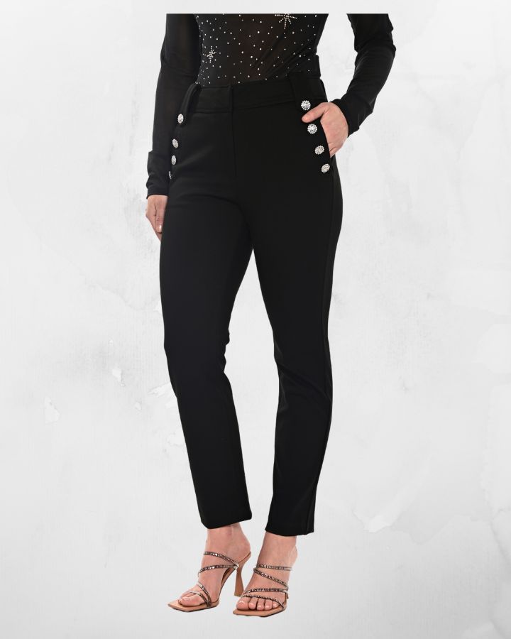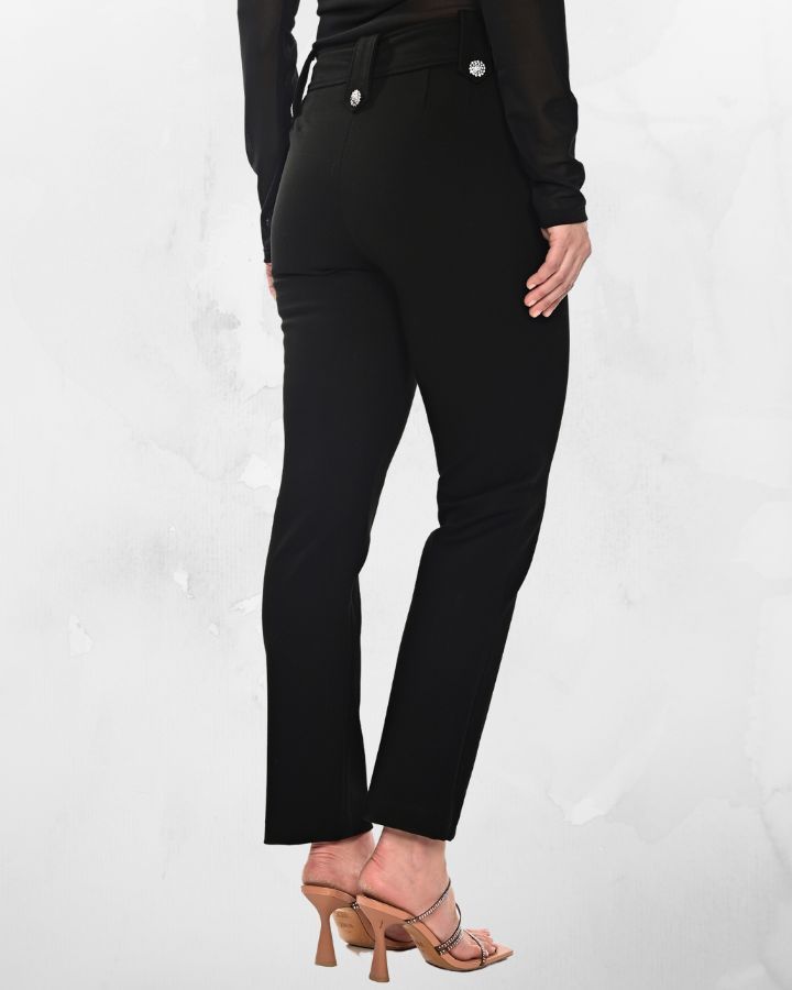 Ces pantalons en tissu tissé sont à la fois élégants et fonctionnels. Leur tissu durable et résistant est parfait pour une utilisation régulière, tandis que leur design raffiné les rend idéaux pour des occasions plus formelles. Les boutons décoratifs sur les poches avant et la ceinture ajoutent une touche de sophistication supplémentaire, tandis que la coupe ajustée assure un look élégant et moderne. Que ce soit pour une réunion professionnelle ou une soirée habillée, ces pantalons sont un excellent choix pour toute femme soucieuse de son apparence et de sa qualité vestimentaire.