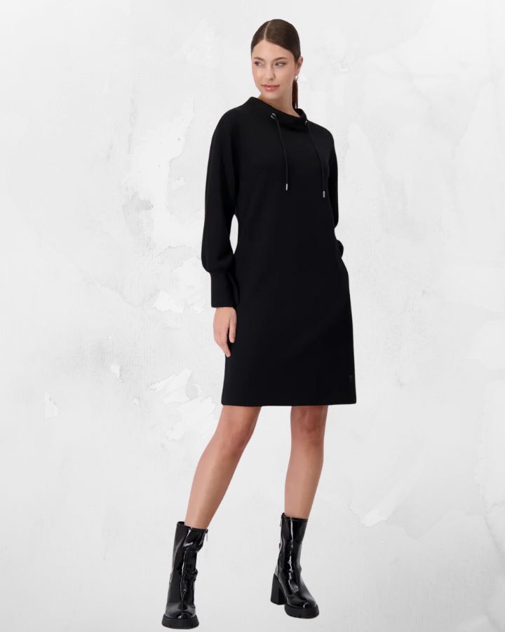 Cette mini-robe à col montant en modal mélangé séduit par son toucher doux et ses larges poignets froncés.